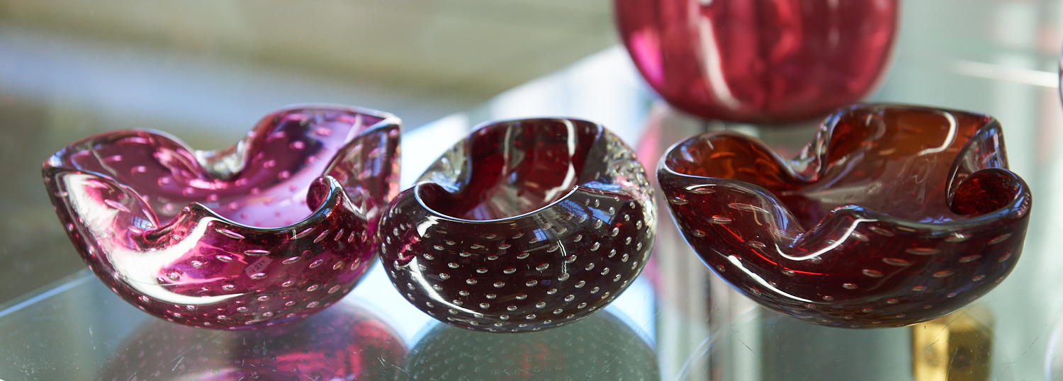 A GROUP OF THREE CONTROL AIR BUBBLE ART GLASS ITEMS, LEONARD JOEL LOCAL DELIVERY SIZE: SMALL