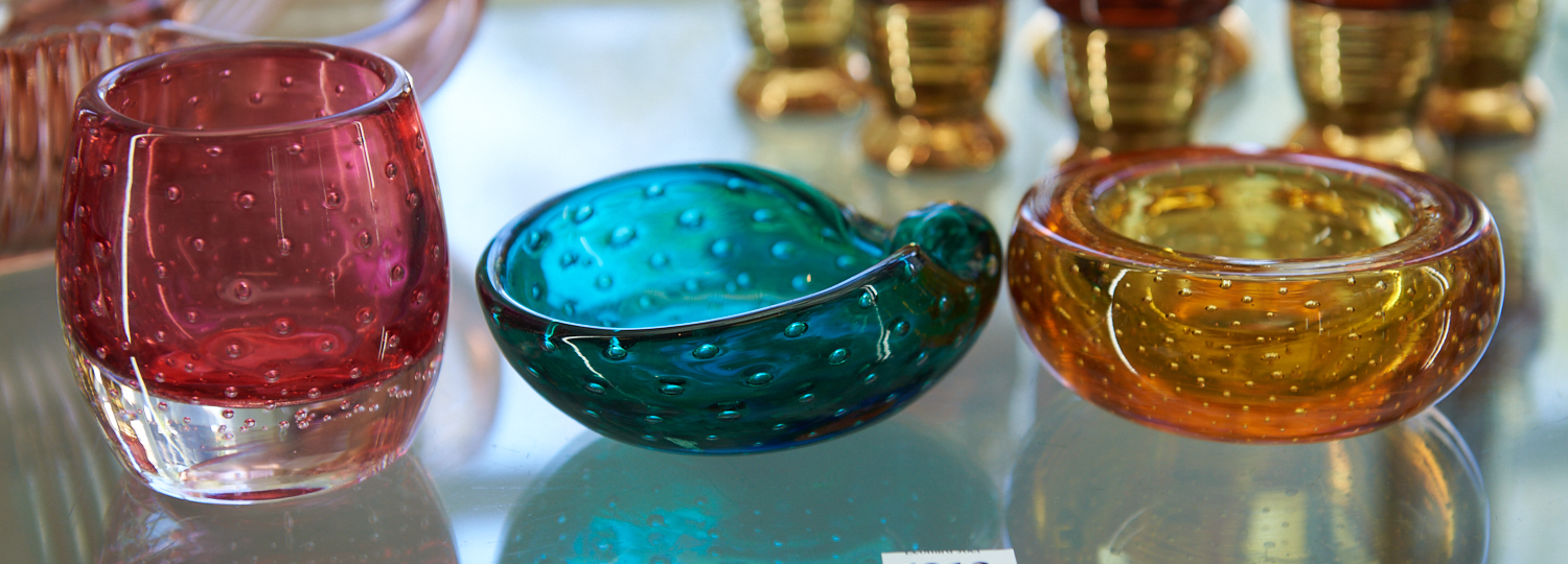 A GROUP OF THREE CONTROL AIR BUBBLE ART GLASS ITEMS, LEONARD JOEL LOCAL DELIVERY SIZE: SMALL