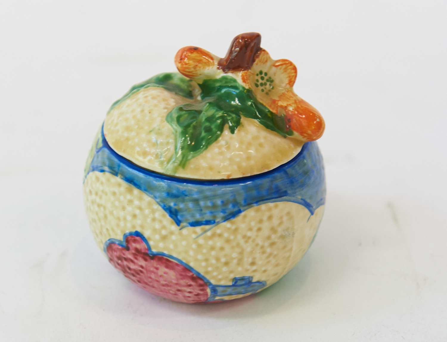 A CLARICE CLIFF BIZARRE FANTASQUE PRESERVES POT (8 CM H), LEONARD JOEL LOCAL DELIVERY SIZE: SMALL