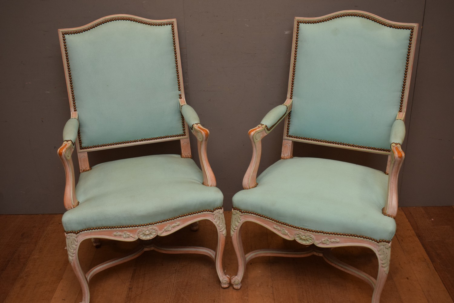 PAIR OF FRENCH LOUIS XIV FAUTEILS, C.1950'S (A/F) (H110 X W64 X D64 CM) (LEONARD JOEL DELIVERY SIZE: LARGE)