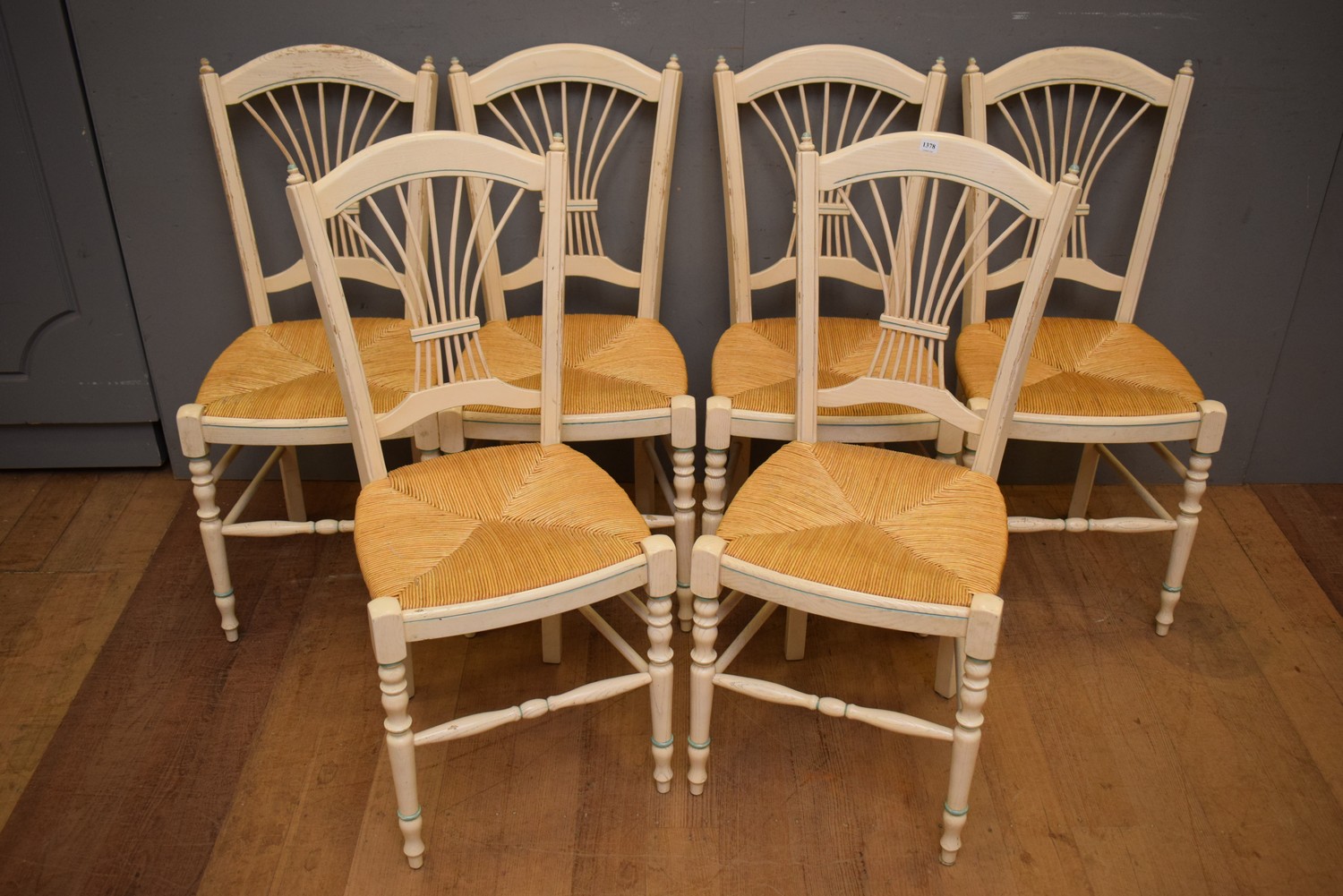 SET OF 6 FRENCH PROVINCIAL RUSH SEATED DINING CHAIRS, C.195O'S (93H x 42W x 48D CM) (LEONARD JOEL DELIVERY SIZE: LARGE)