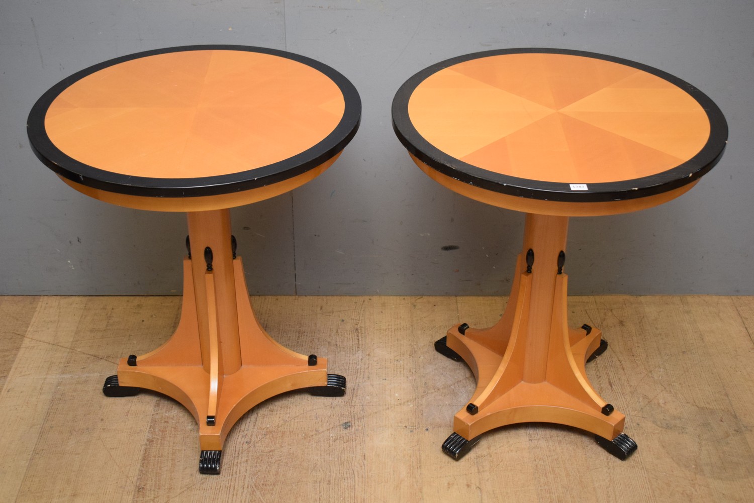 A PAIR OF FRENCH EMPIRE MANNER OCCASIONAL TABLES - EX HOTEL INTERCONTINENTAL PARIS (A/F) (67H x 58D CM) (LEONARD JOEL DELIVERY SIZE: MEDIUM)