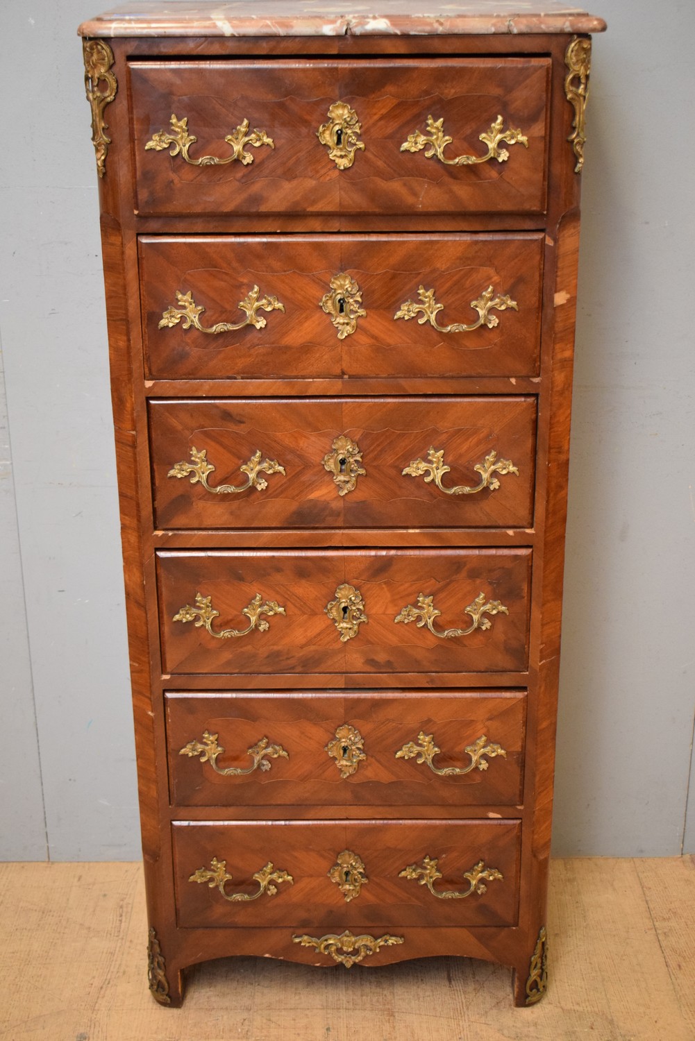 VERY FINE EARLY 19TH CENTURY FRENCH LOUIS XV KINGWOOD 6 DRAWER SEMANIER, C.1850'S (A/F) (H143 X W64 X D38 CM) (PLEASE NOTE THIS HEAVY ITEM MUST BE REMOVED BY CARRIERS AT THE CUSTOMER'S EXPENSE. LEONARD JOEL STAFF CANNOT ASSIST CARRYING THIS ITEM) (X-LARGE ITEM)