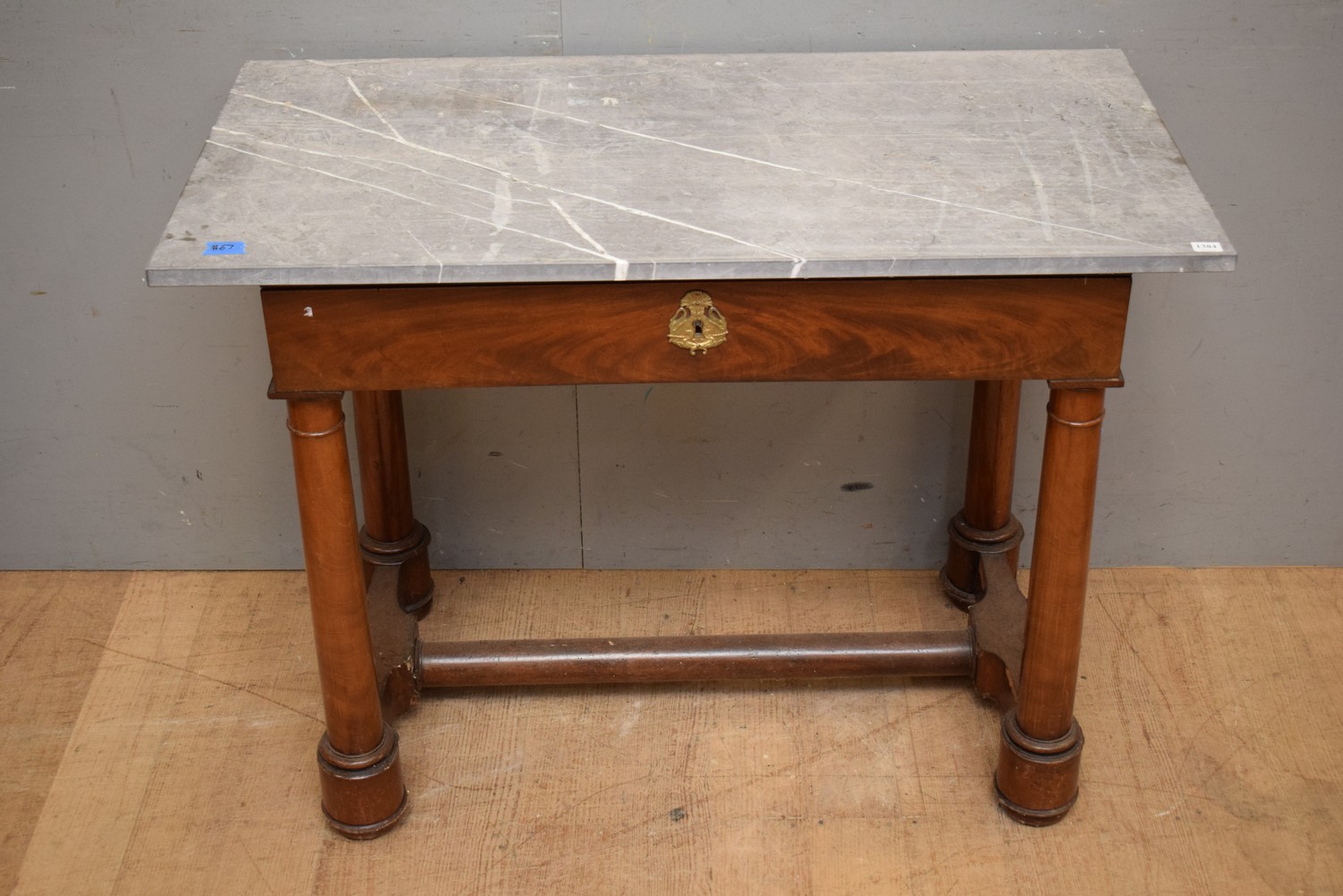 FRENCH EMPIRE PERIOD MAHOGANY SINGLE DRAWER SIDE TABLE, 1820'S (A/F) (73H x 96W x 49D CM) (PLEASE NOTE THIS HEAVY ITEM MUST BE REMOVED BY CARRIERS AT THE CUSTOMER'S EXPENSE. LEONARD JOEL STAFF CANNOT ASSIST CARRYING THIS ITEM) (X-LARGE ITEM)