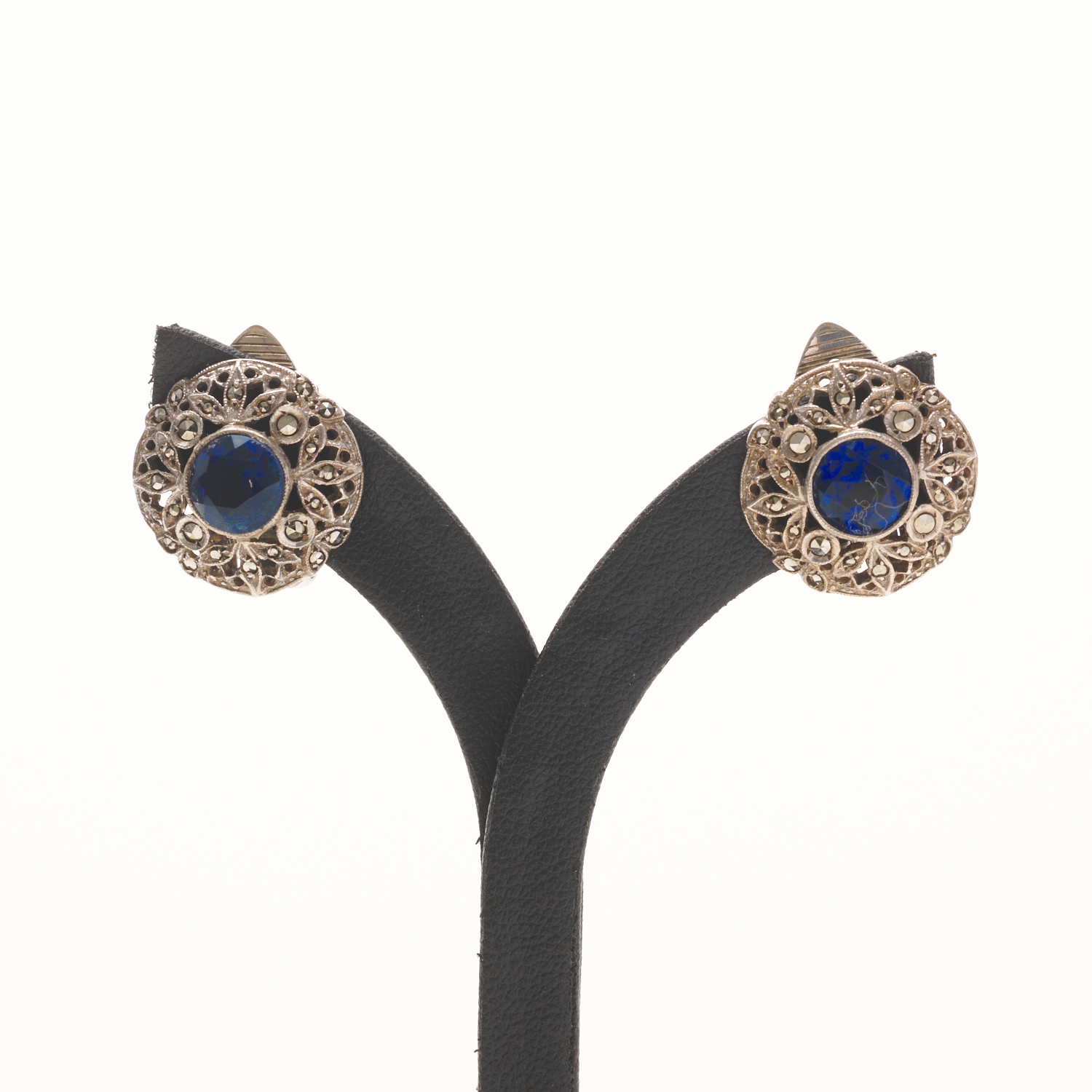 A PAIR OF PASTE SET CLIP EARRINGS IN SILVER