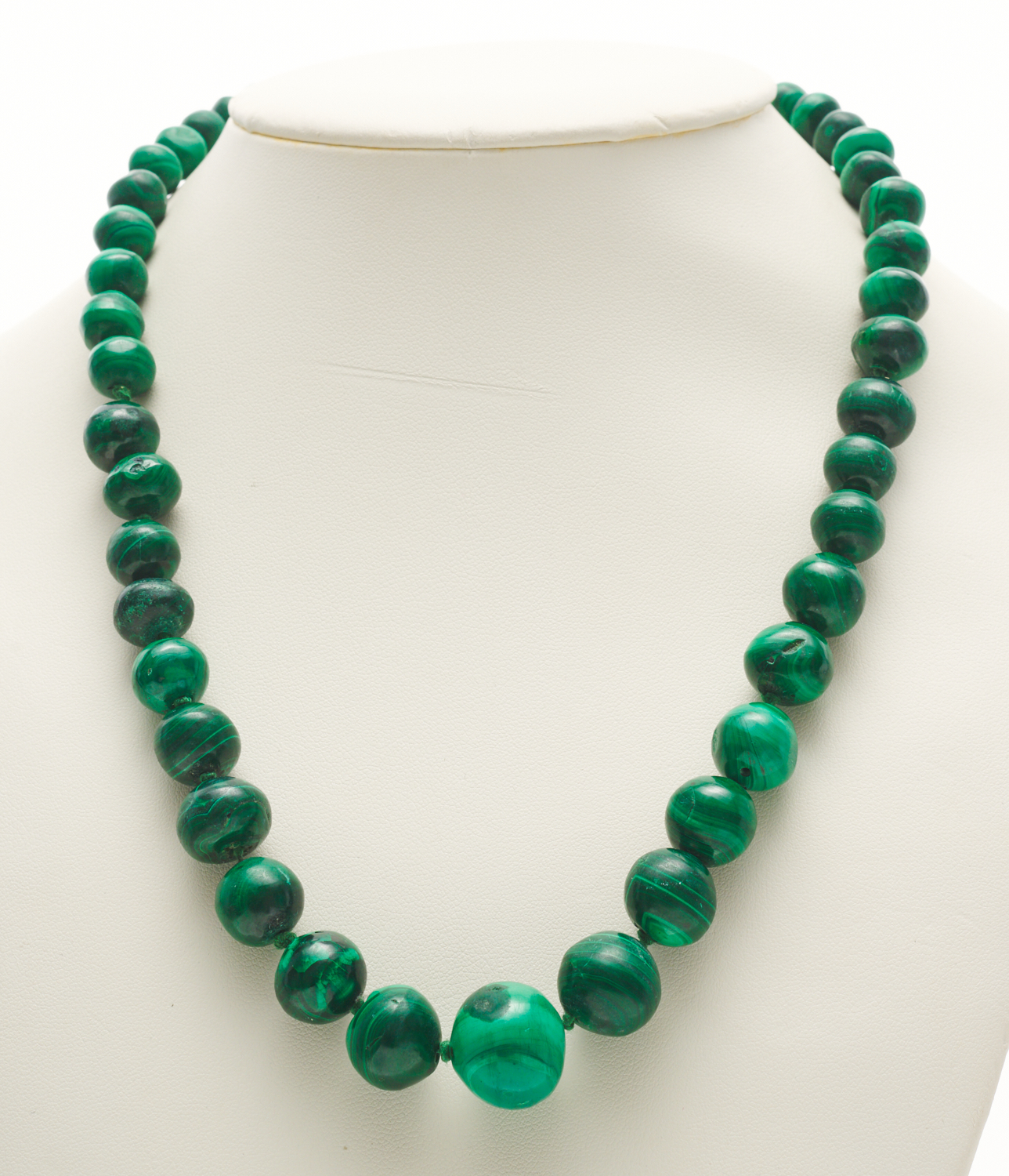Necklace is in good condition overall; some beads present minor chips and/or imperfections, consistent with age and use; clasp is in working order.
