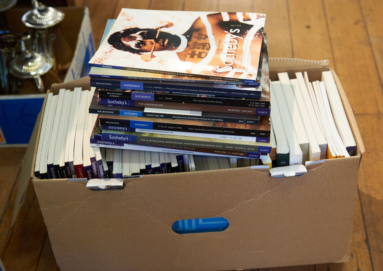 A BOX OF ASSORTED CATALOGUES, LEONARD JOEL LOCAL DELIVERY SIZE: SMALL