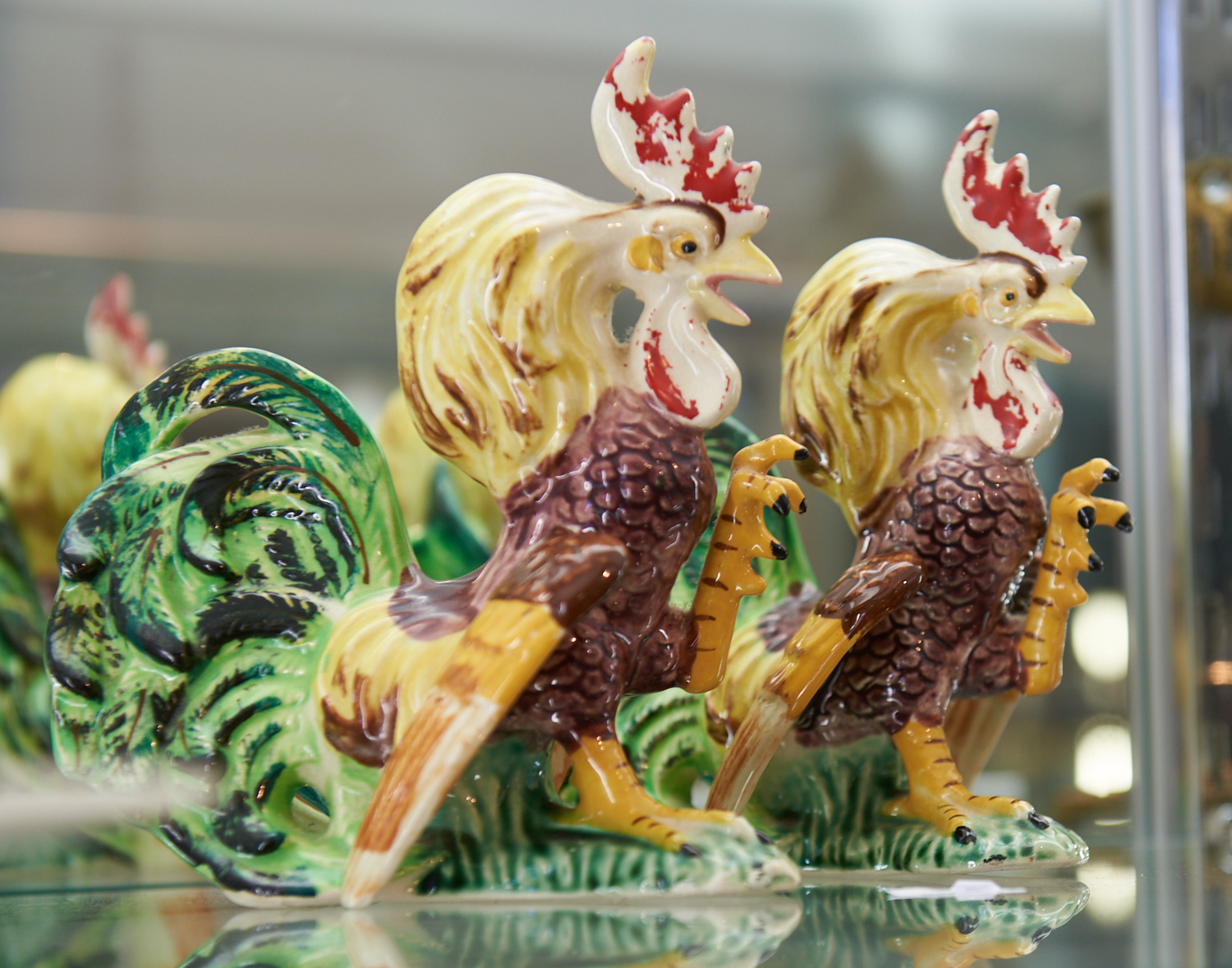 A PAIR OF CERAMIC ROOSTERS, LEONARD JOEL LOCAL DELIVERY SIZE: SMALL