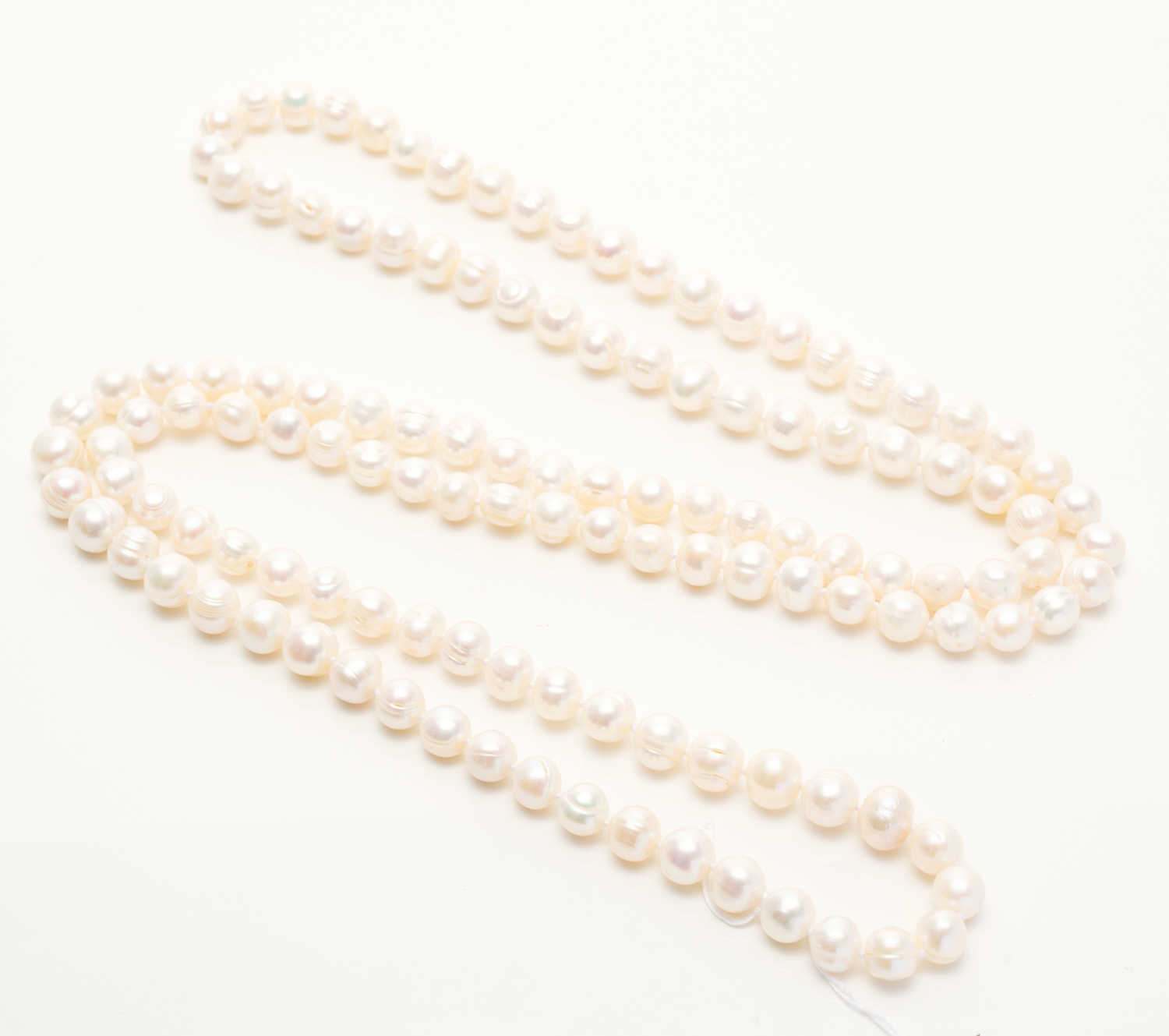A LONG STRAND OF FRESH WATER PEARLS, TOTAL LENGTH 116CMS