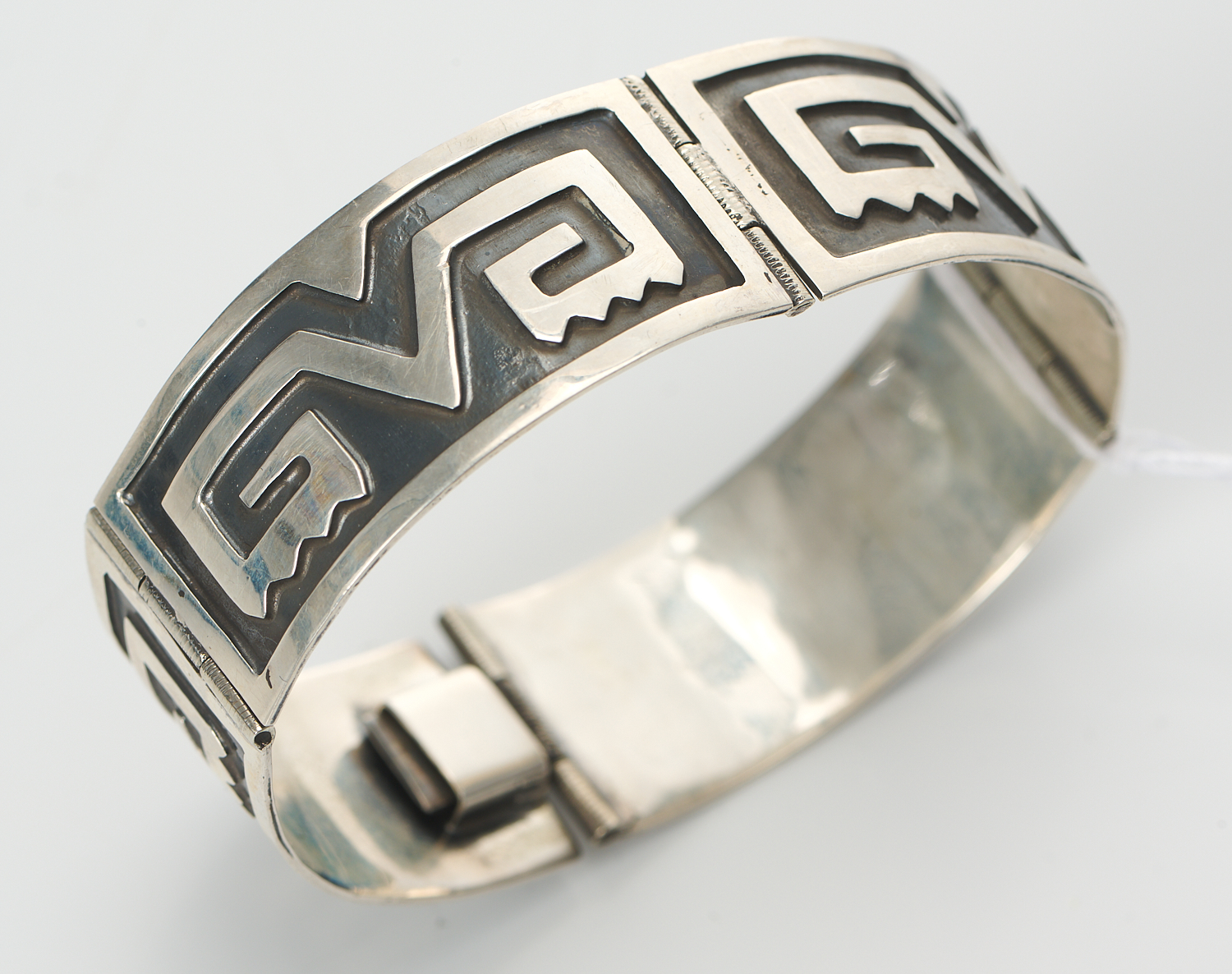 A TEXACO MEXICAN SILVER HINGED BANGLE, LENGTH 17CM