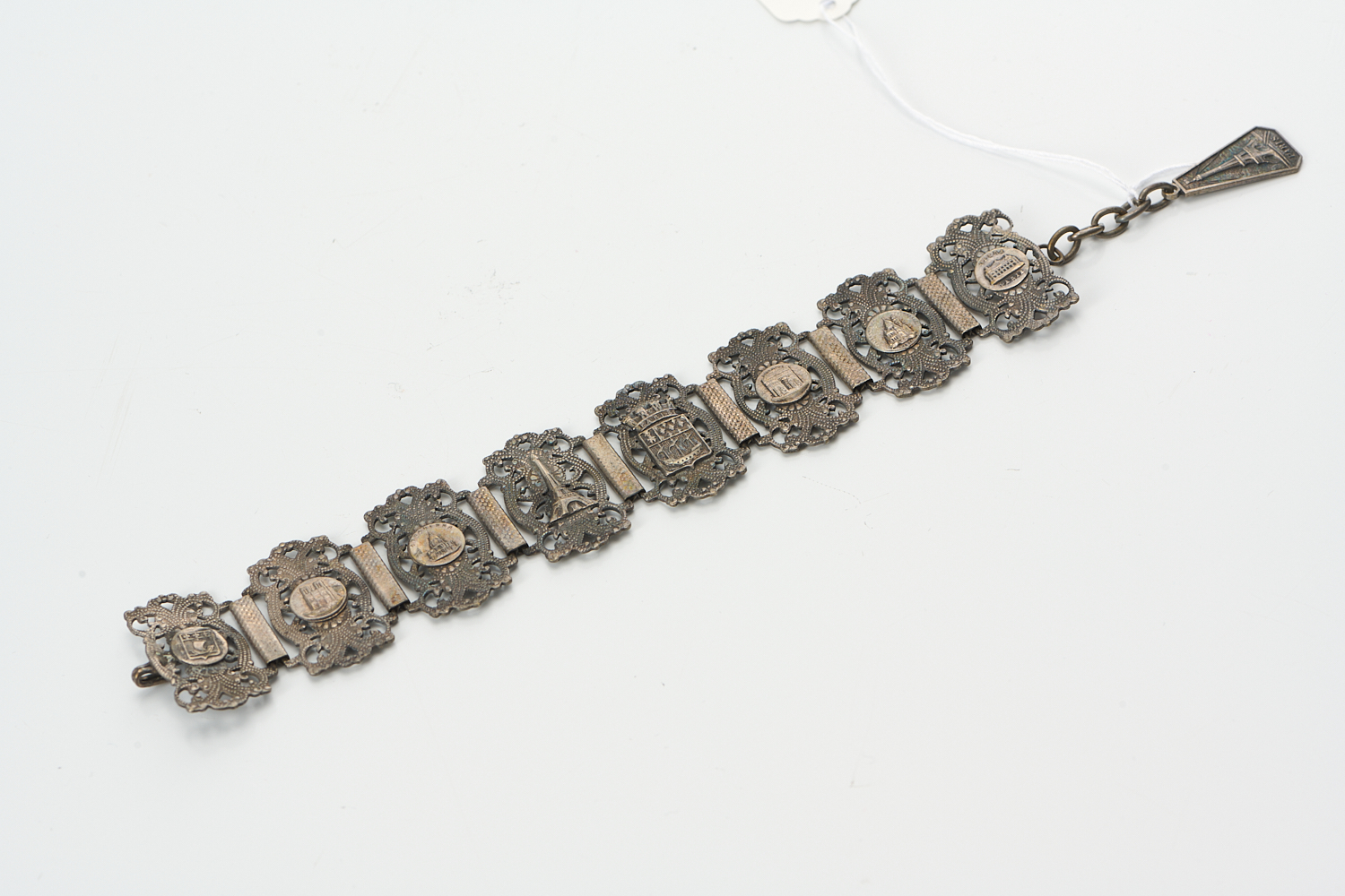 A VINTAGE TOURIST BRACELET IN BASE METAL FEATURING PARISIAN MONUMENTS, LENGTH 18CM