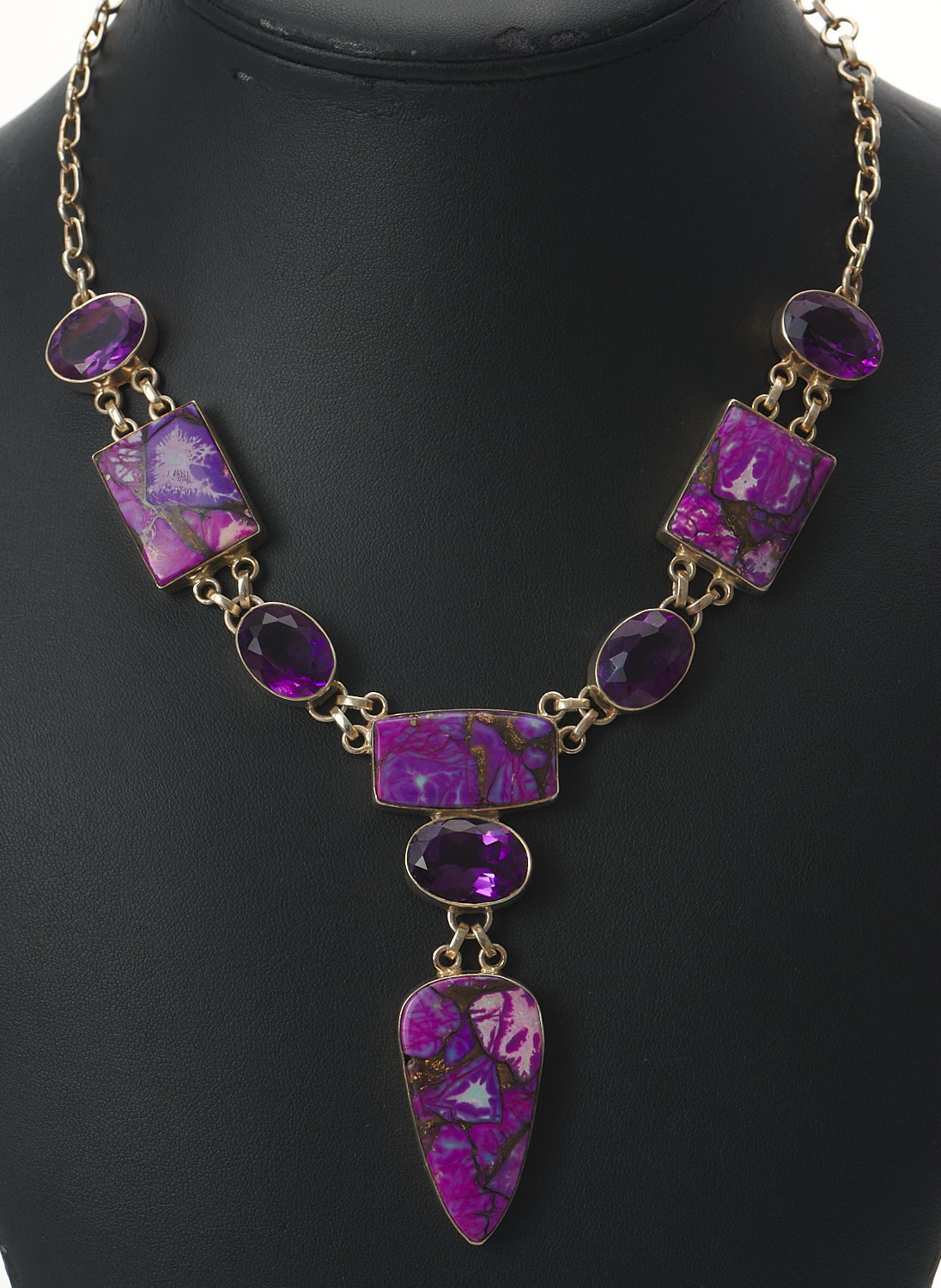 A PURPLE GEM SET NECKLACE IN SILVER, LENGTH 45CM
