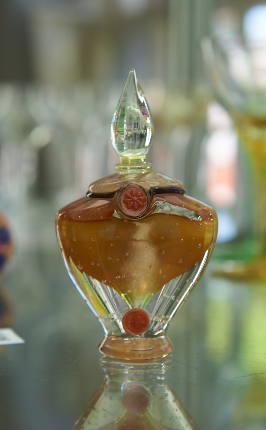 A RICHARD CLEMENTS ART GLASS PERFUME BOTTLE IN SHADES OF ORANGE, H.10.6CM, LEONARD JOEL LOCAL DELIVERY SIZE: SMALL
