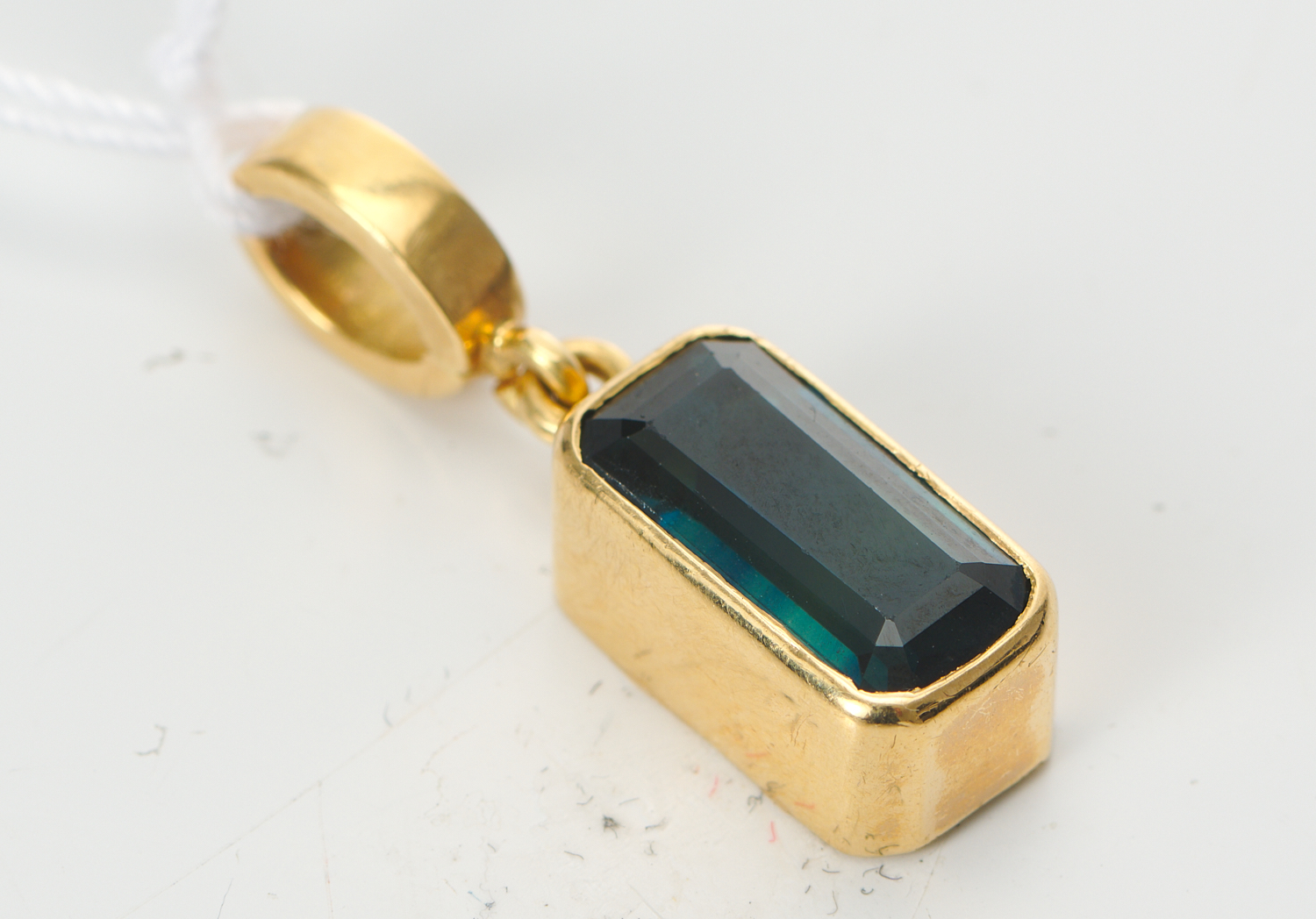 The sapphire displays natural banding inclusions.