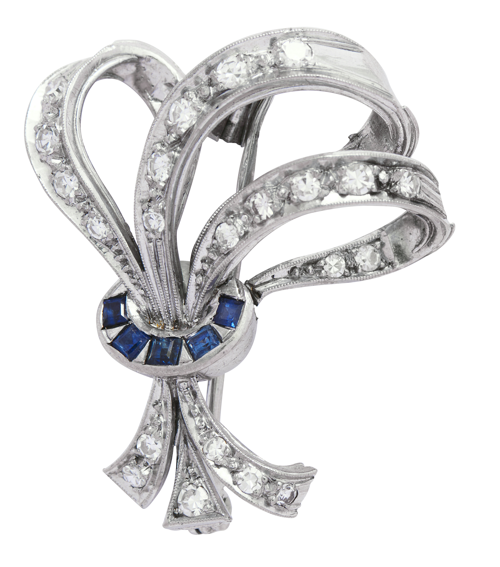 14CT WHITE GOLD, SAPPHIRE AND DIAMOND BROOCH, CIRCA 1940