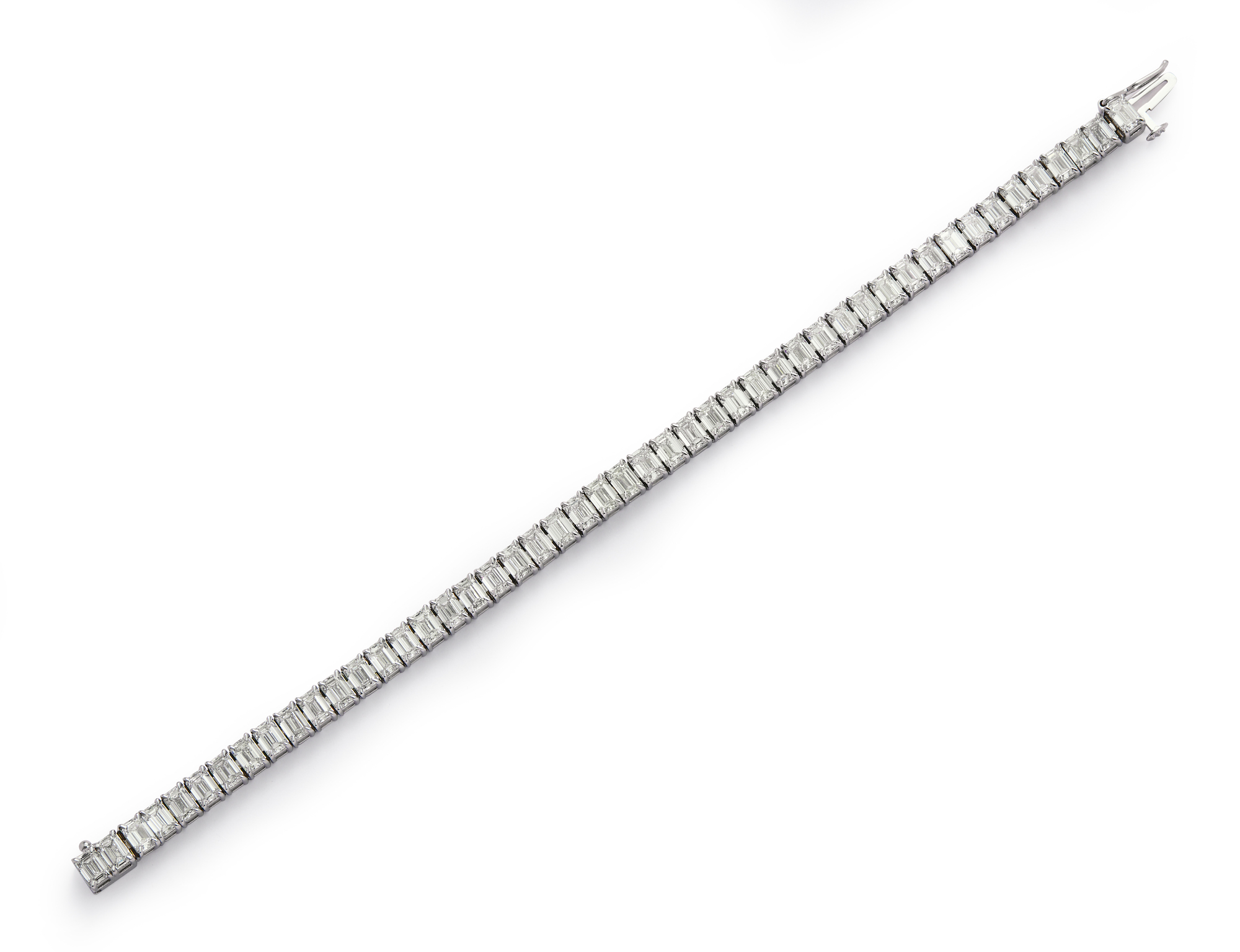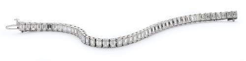 Composed of a line of 48 claw-set emerald-cut diamonds completed by a concealed box clasp, the diamonds together weighing approximately 15.52 carats, length approximately 180mm.