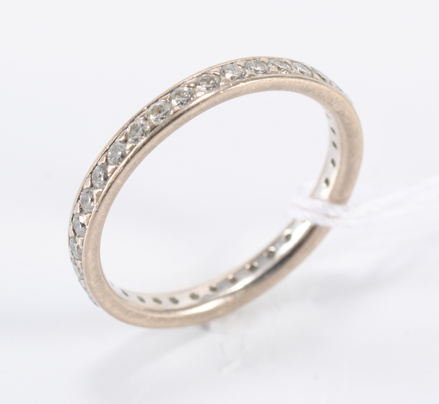 A DIAMOND BAND RING IN 18CT, RING SIZE N, 2.63GMS