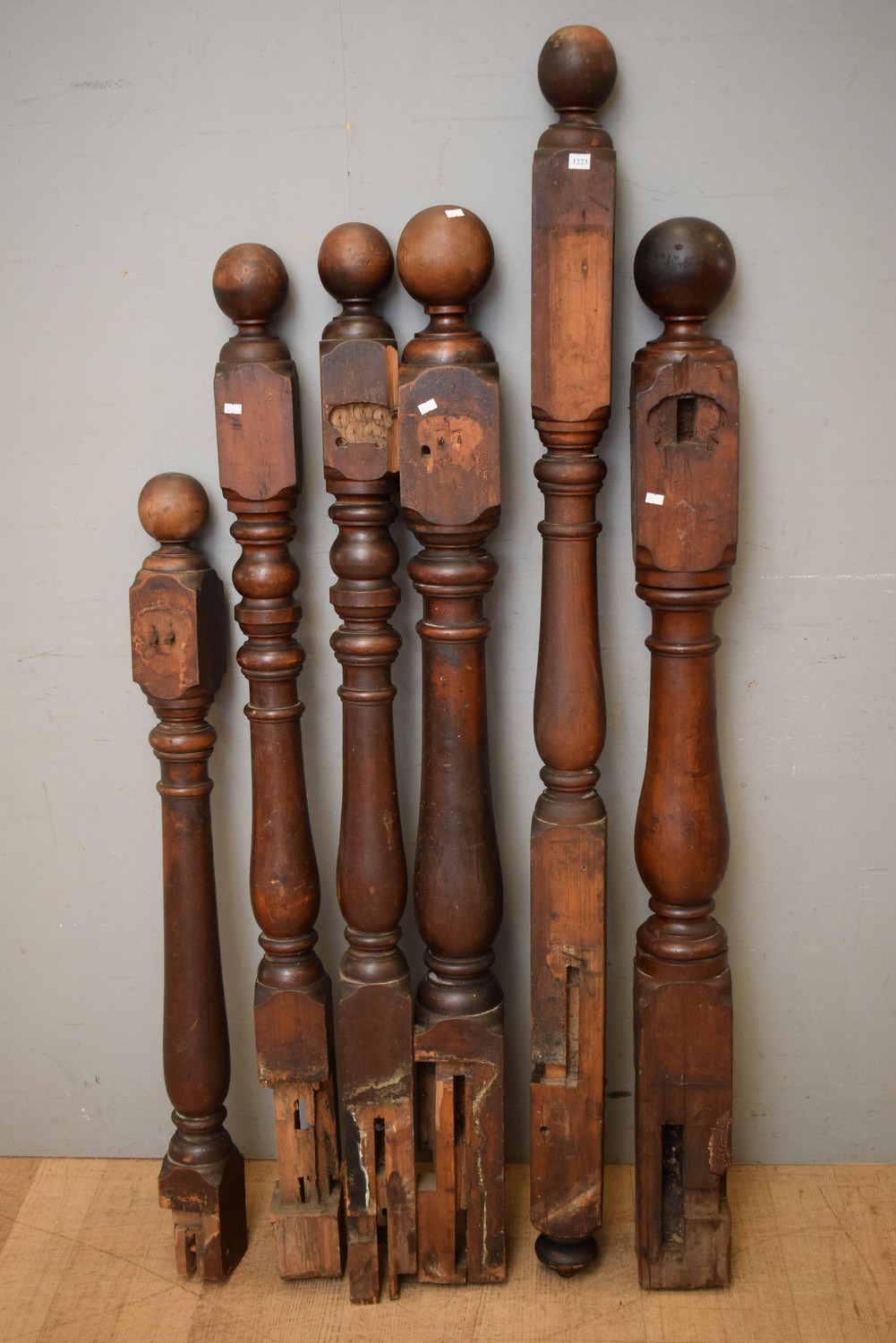 A COLLECTION OF VICTORIAN CEDAR NEWEL POSTS (A/F) (LARGEST 172H CM) (LEONARD JOEL DELIVERY SIZE: LARGE)