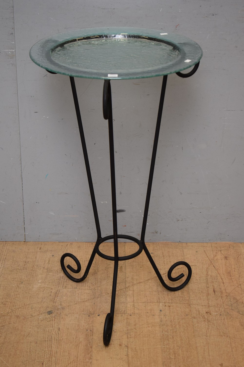 A WROUGHT IRON AND GLASS DISPLAY STAND (86H X 57D CM) (LEONARD JOEL DELIVERY SIZE: MEDIUM)
