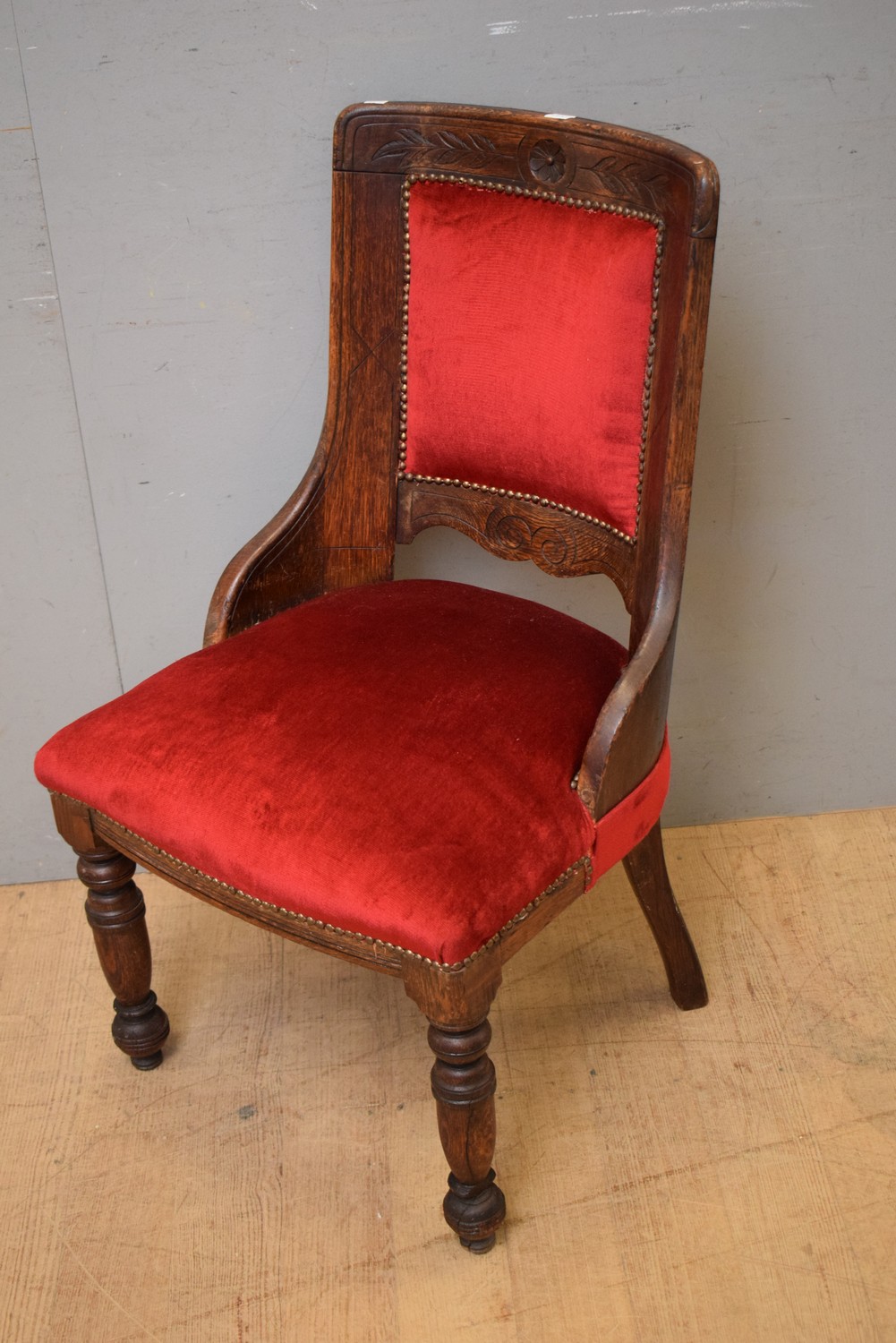 A CARVED TIMBER BEDROOM CHAIR (A/F) (92H X 55W X 55D CM) (LEONARD JOEL DELIVERY SIZE: MEDIUM)