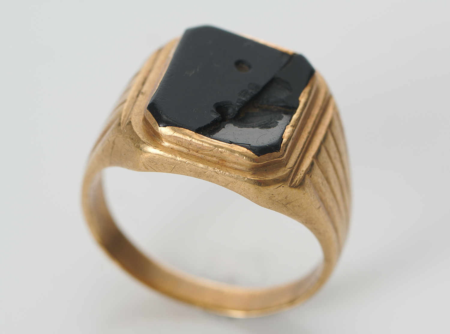 A GENTLEMAN'S SIGNET RING IN 9CT GOLD, A/F, SIZE U, 7.7GMS
