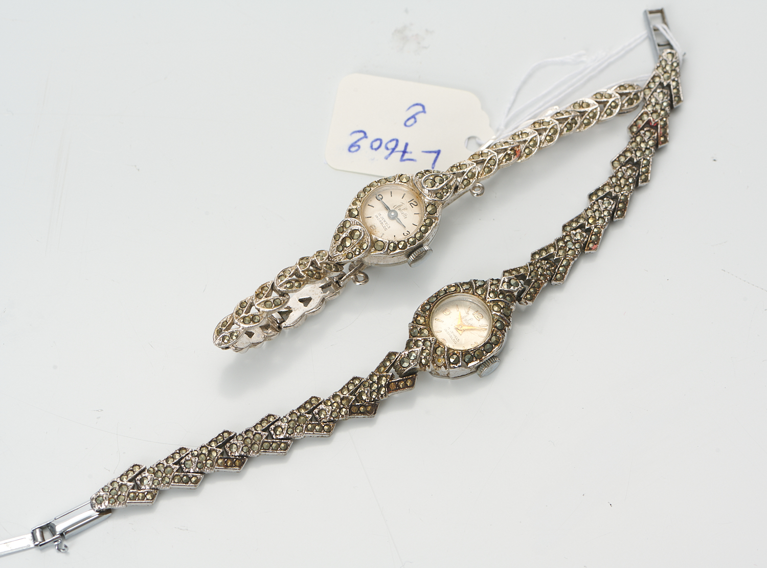 TWO LADIES COCKTAIL WRISTWATCHES COMPRISING MARCASITES, MANUAL WIND