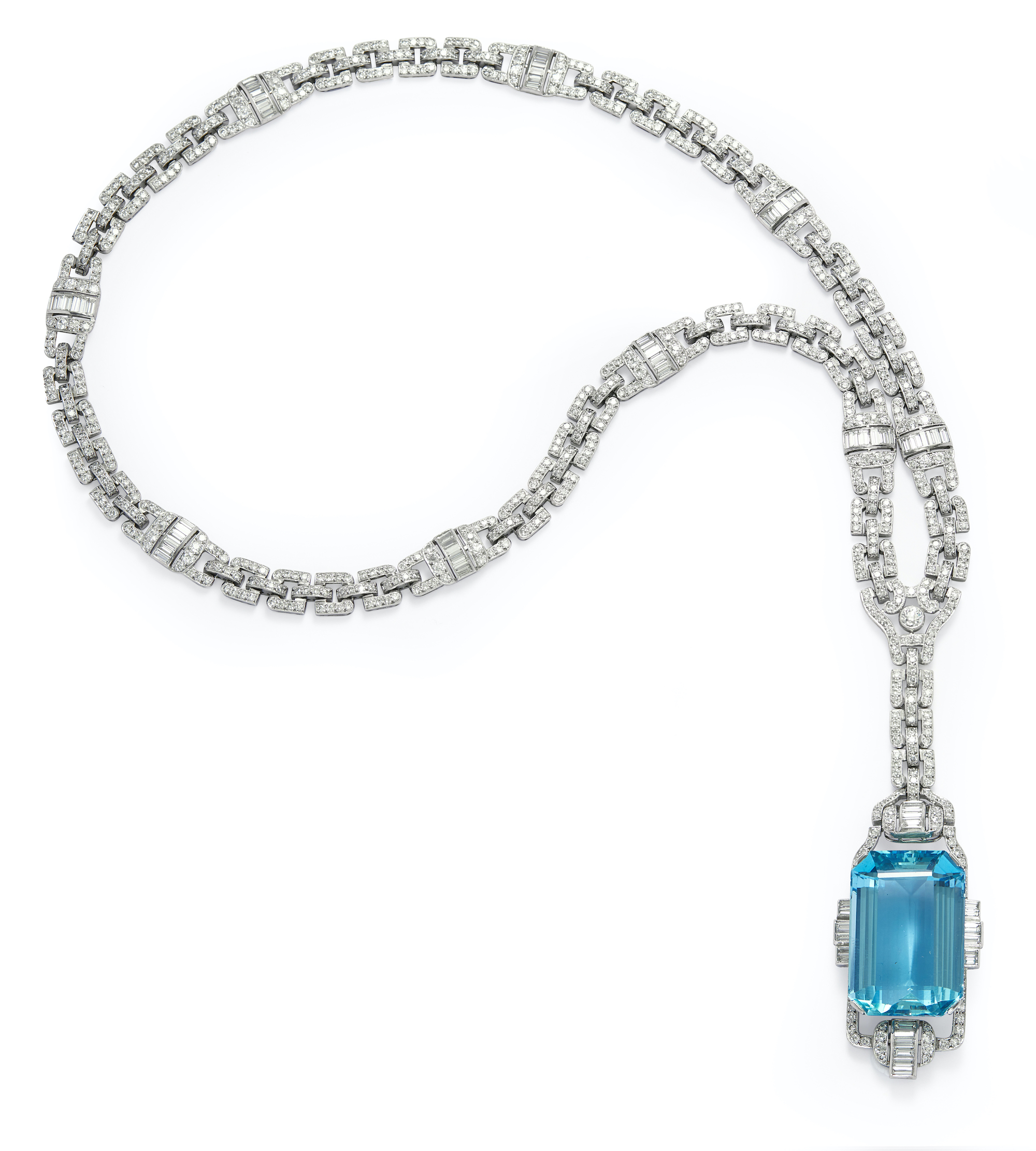 PLATINUM, AQUAMARINE AND DIAMOND SAUTOIR
