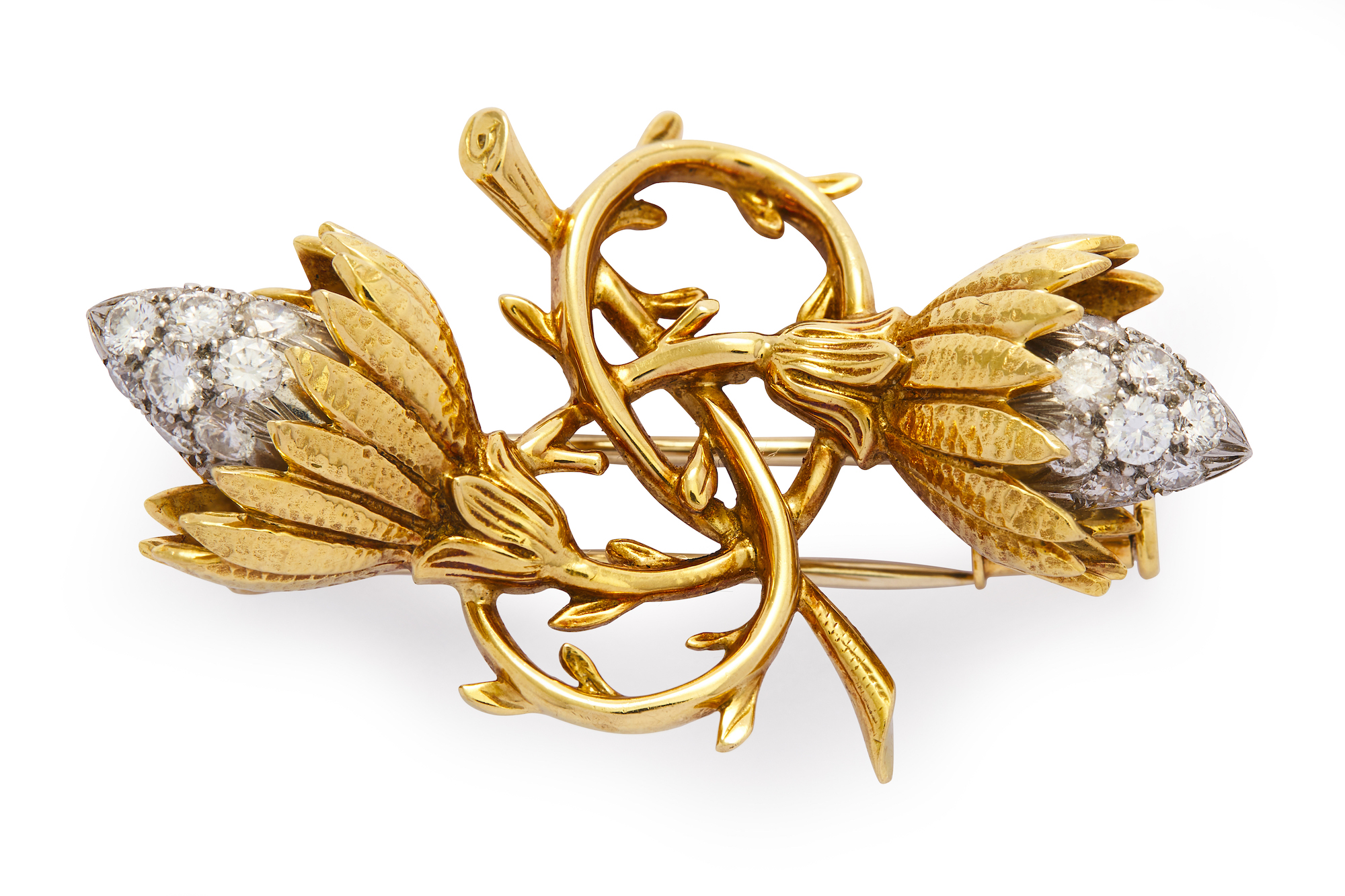 18CT GOLD, PLATINUM AND DIAMOND 'TULIP' BROOCH, JEAN SCHLUMBERGER FOR TIFFANY & CO.