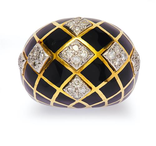 18CT GOLD, PLATINUM, DIAMOND AND ENAMEL RING, DAVID WEBB