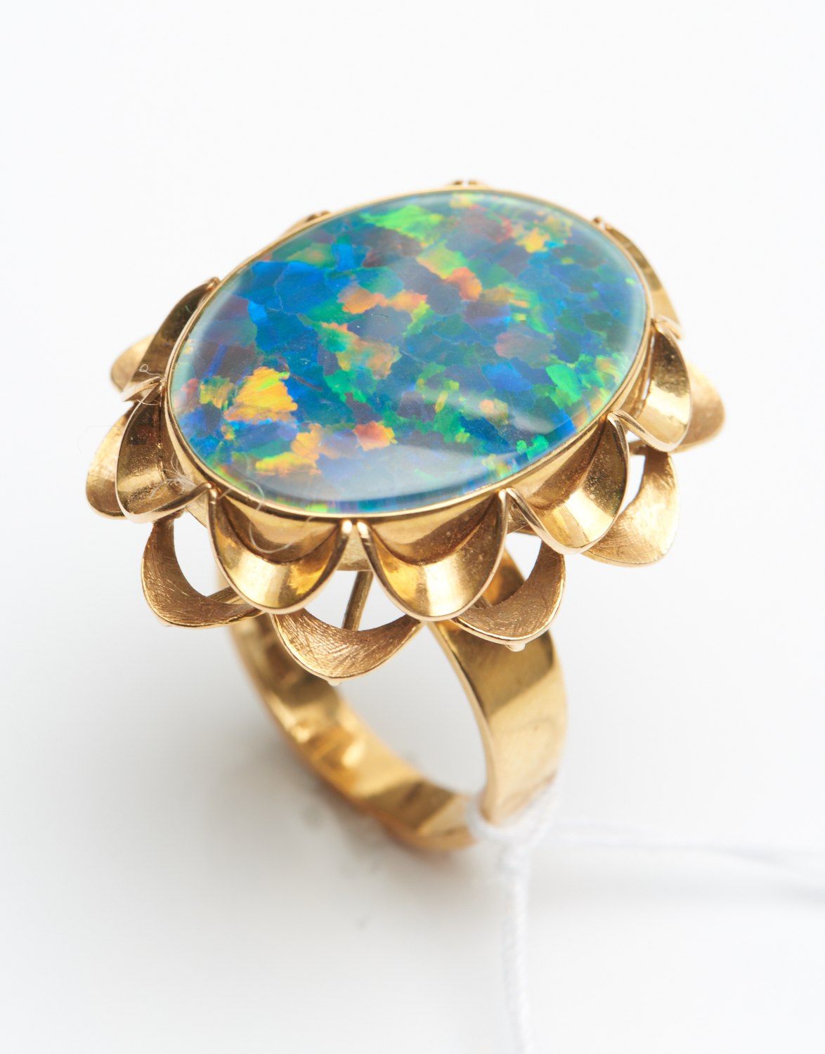 A VINTAGE OPAL TRIPLET RING IN 14CT GOLD, SIZE O, 12.3GMS