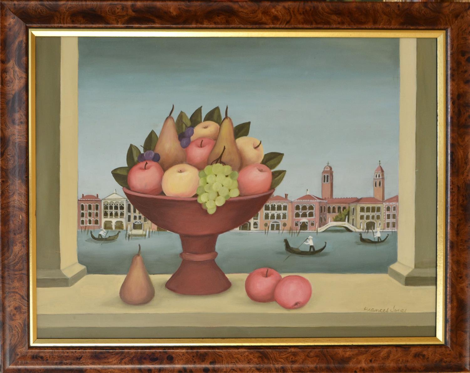 FRANCES JONES, SUMMER IN VENICE, OIL ON BOARD, 44 X 60CM, LEONARD JOEL DELIVERY SIZE: MEDIUM, CONDITION: VERY GOOD, VERY SLIGHT SURFACE SCRATCHES