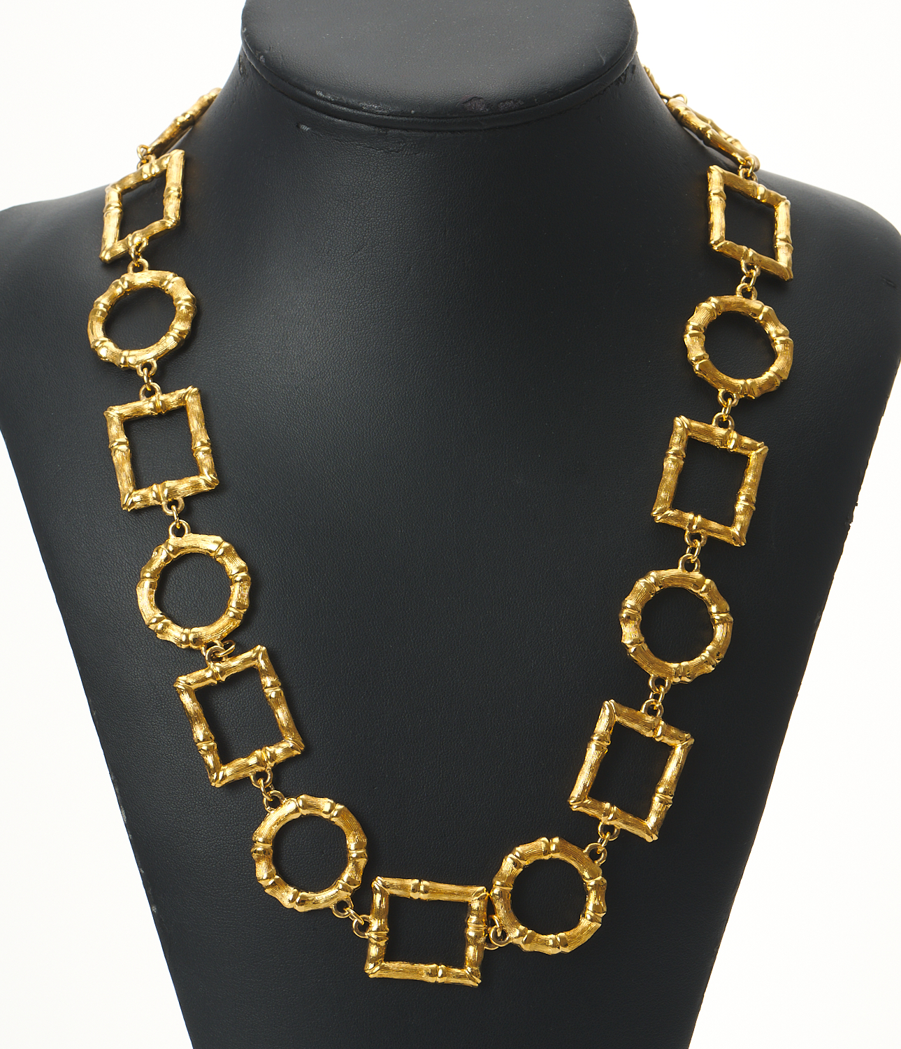 A MONET BAMBOO STYLE GEOMETRIC LINK COSTUME NECKLACE IN GILT, LENGTH 29CM