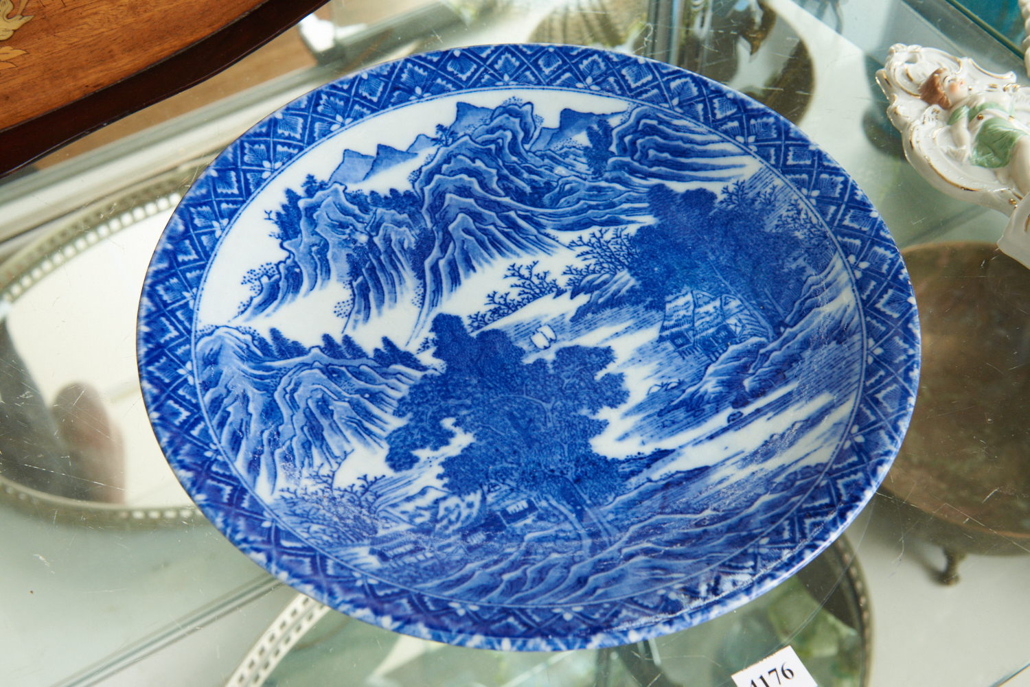 AN EARLY 20TH CENTURY BLUE AND WHITE JAPANESE PLATE WITH LANDSCAPE DECORATION, LEONARD JOEL LOCAL DELIVERY SIZE: SMALL