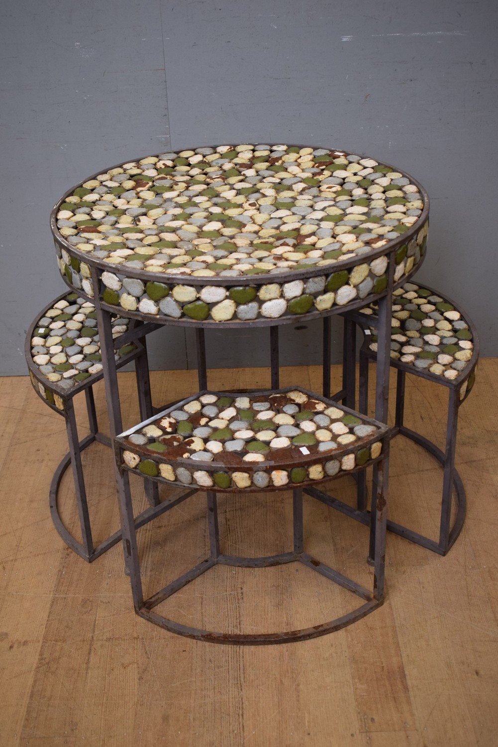 A FIVE PIECE OUTDOOR SETTING (A/F) (TABLE 79H X 80D CM) (LEONARD JOEL DELIVERY SIZE: LARGE)
