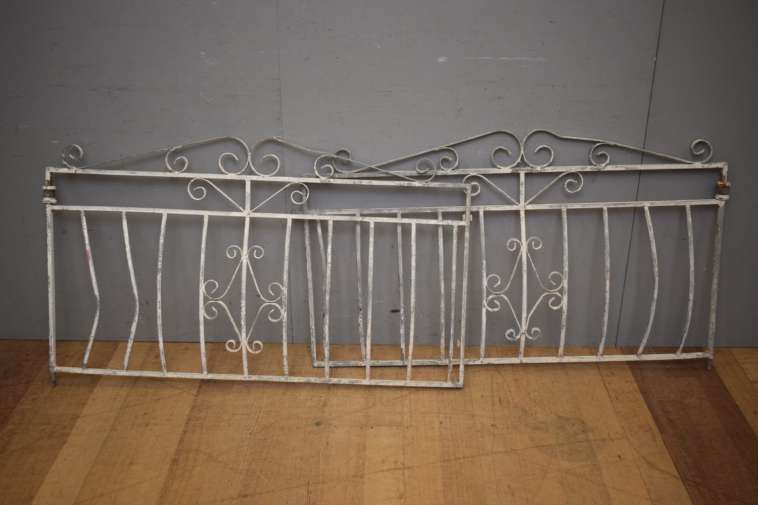 TWO MID-CENTURY OUTDOOR GATES (A/F) (78H X 131W EACH) (LEONARD JOEL DELIVERY SIZE: LARGE)