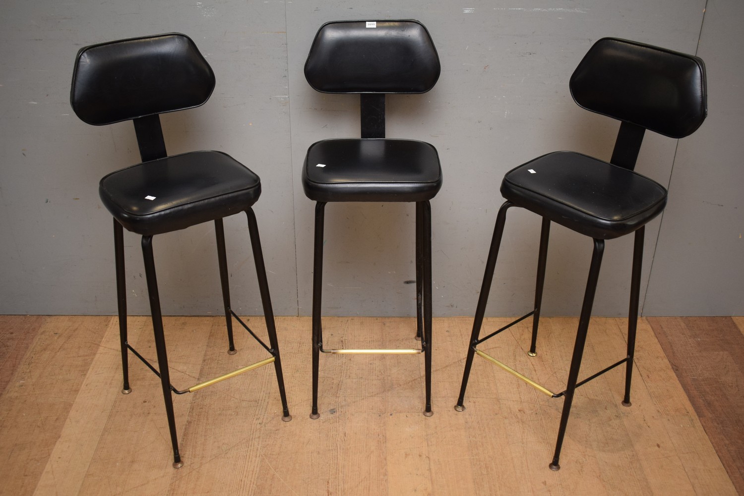 A SET OF THREE VINYL BARSTOOLS (A/F) (96H X 36W X 42DCM) (LEONARD JOEL DELIVERY SIZE: MEDIUM)
