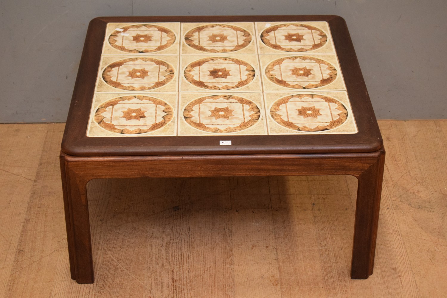 A MID-CENTURY TILED TOP COFFEE TABLE (38H X 72W X 72D CM) (LEONARD JOEL DELIVERY SIZE: MEDIUM)