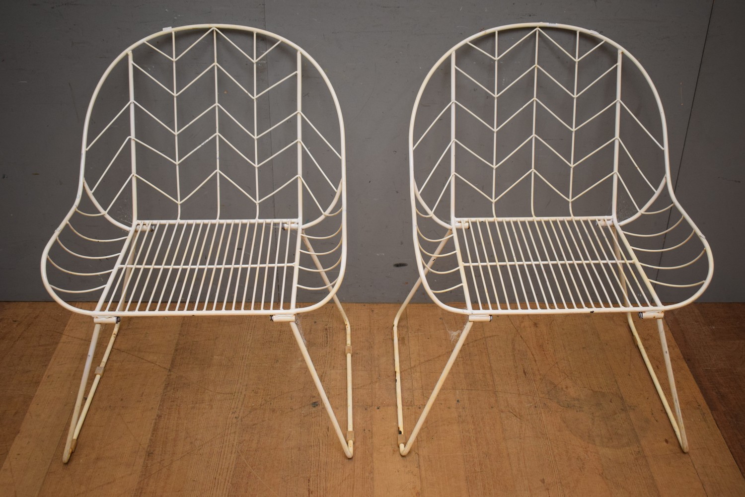 A PAIR OF MID-CENTURY STYLE OUTDOOR CHAIRS (A/F) (86H X 76W X 61H CM) (LEONARD JOEL DELIVERY SIZE: LARGE)
