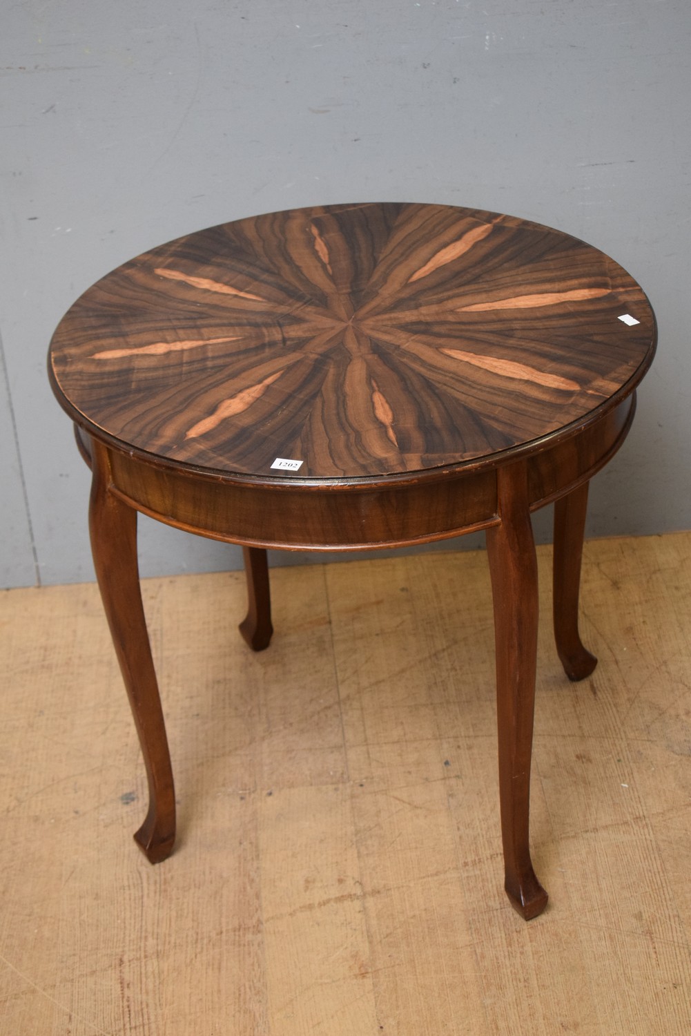 A WALNUT BUTTERFLY VENEERED SIDE TABLE, C 1930S (57H X 61D CM) (LEONARD JOEL DELIVERY SIZE: MEDIUM)