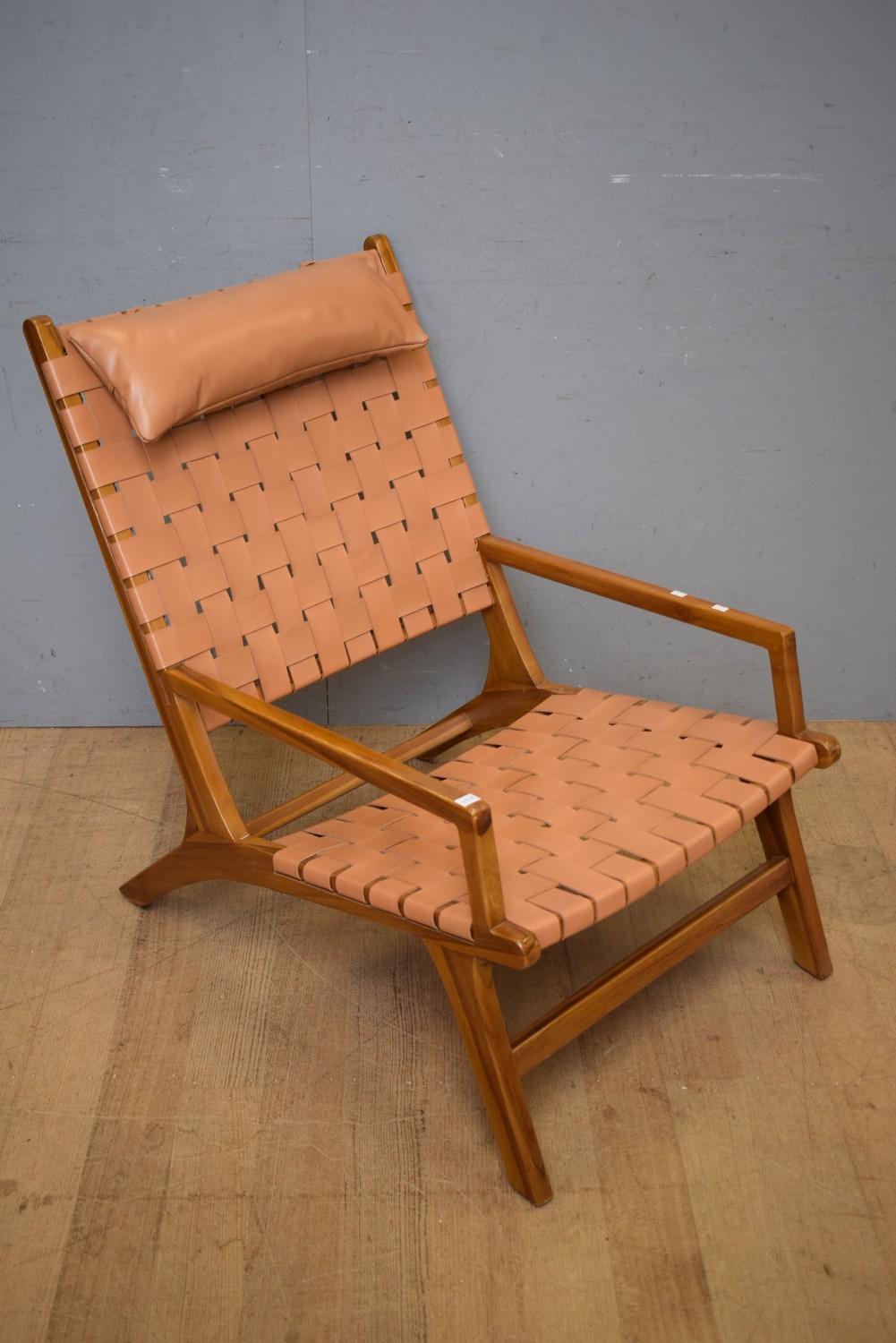 A TEAK AND LEATHER ACCENT CHAIR (91H X 64W X 94D CM) (LEONARD JOEL DELIVERY SIZE: LARGE)