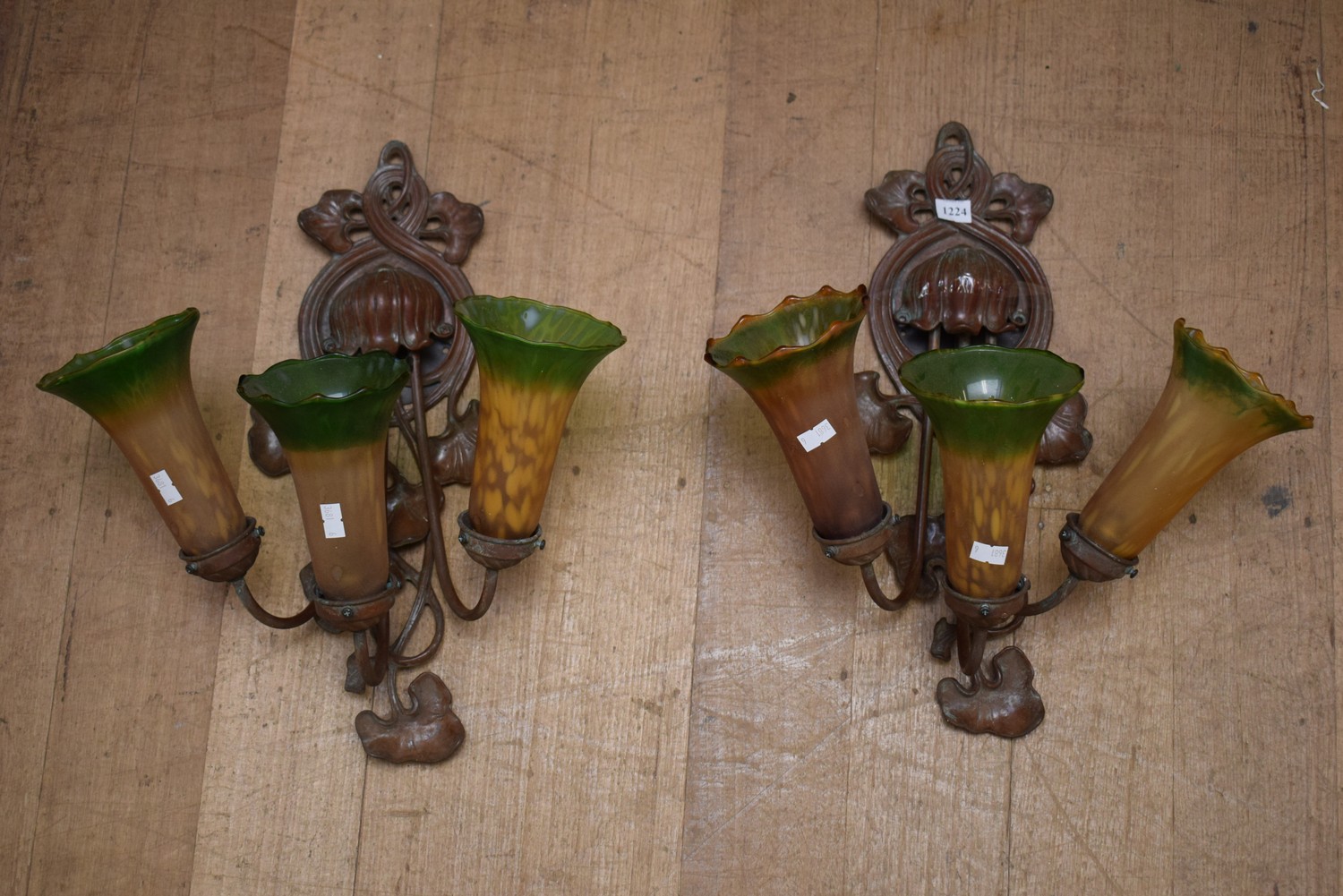 A PAIR OF WALL MOUNTED ART NOUVEAU STYLE LAMPS (A/F) (45H X 40W CM) (LEONARD JOEL DELIVERY SIZE: SMALL)