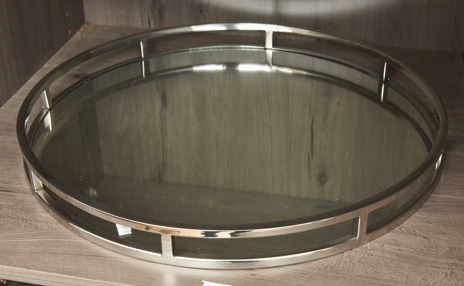 A CIRCULAR GALLERY EDGE MIRRORED TRAY, LEONARD JOEL LOCAL DELIVERY SIZE: SMALL