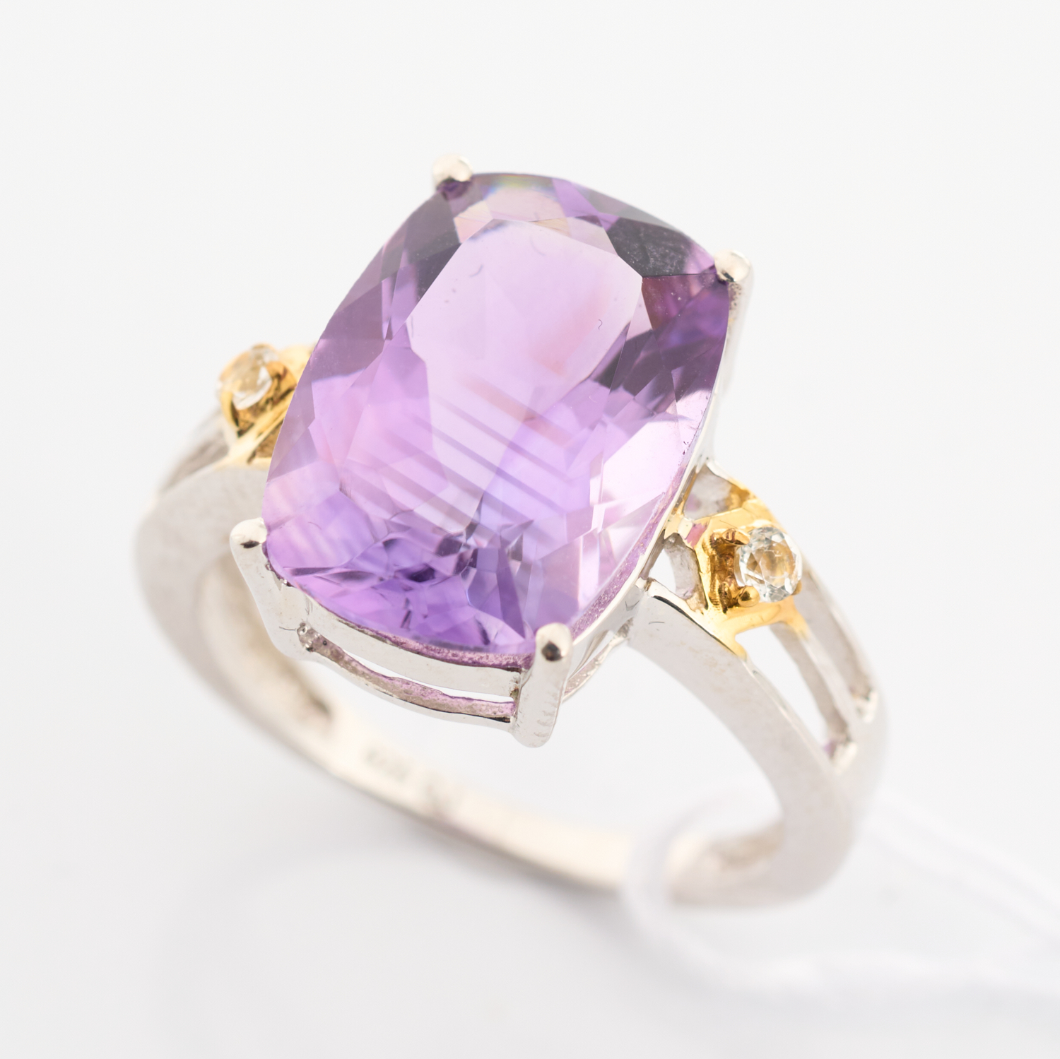 AN AMETHYST DRESS RING IN SILVER, RING SIZE N.