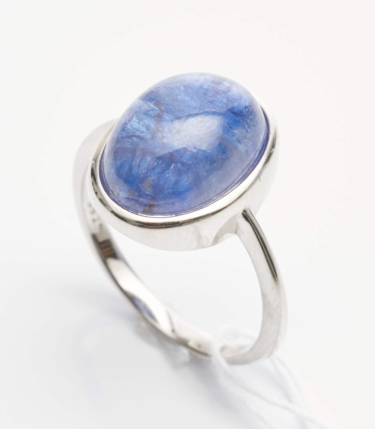 A CABOCHON CUT TANZANITE RING IN SILVER, SIZE R