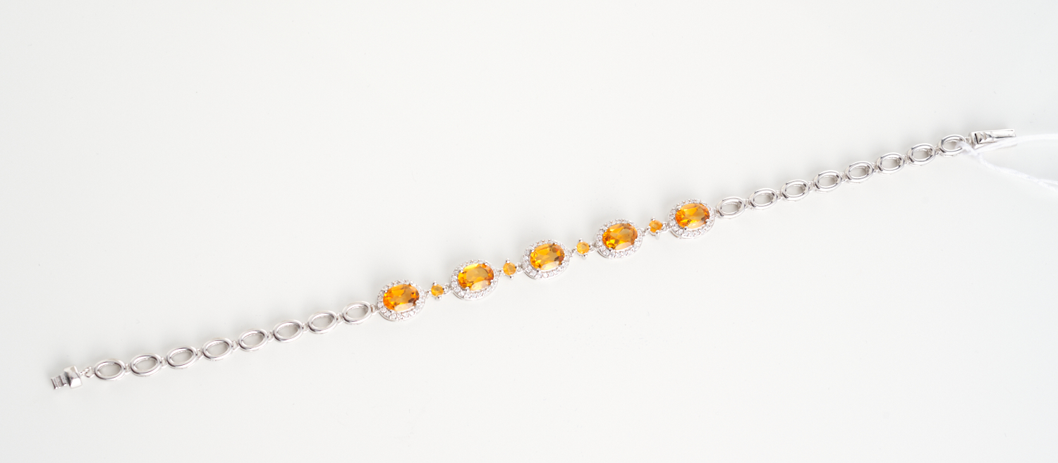 A CITRINE AND ZIRCON BRACELET IN SILVER, TOTAL LENGTH 180MM.