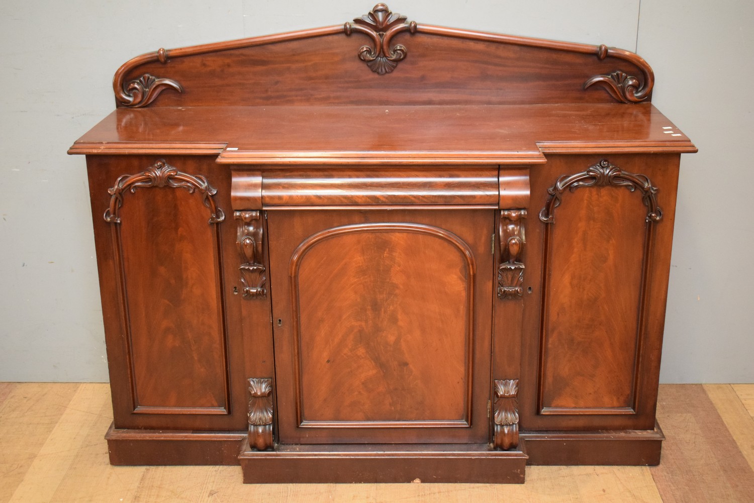 A VICTORIAN MAHOGANY BREAKFRONT SIDEBOARD (A/F) (118H X 156W X 55D CM) (PLEASE NOTE THIS HEAVY ITEM MUST BE REMOVED BY CARRIERS AT THE CUSTOMER'S EXPENSE. LEONARD JOEL STAFF CANNOT ASSIST CARRYING THIS ITEM) (X-LARGE ITEM)