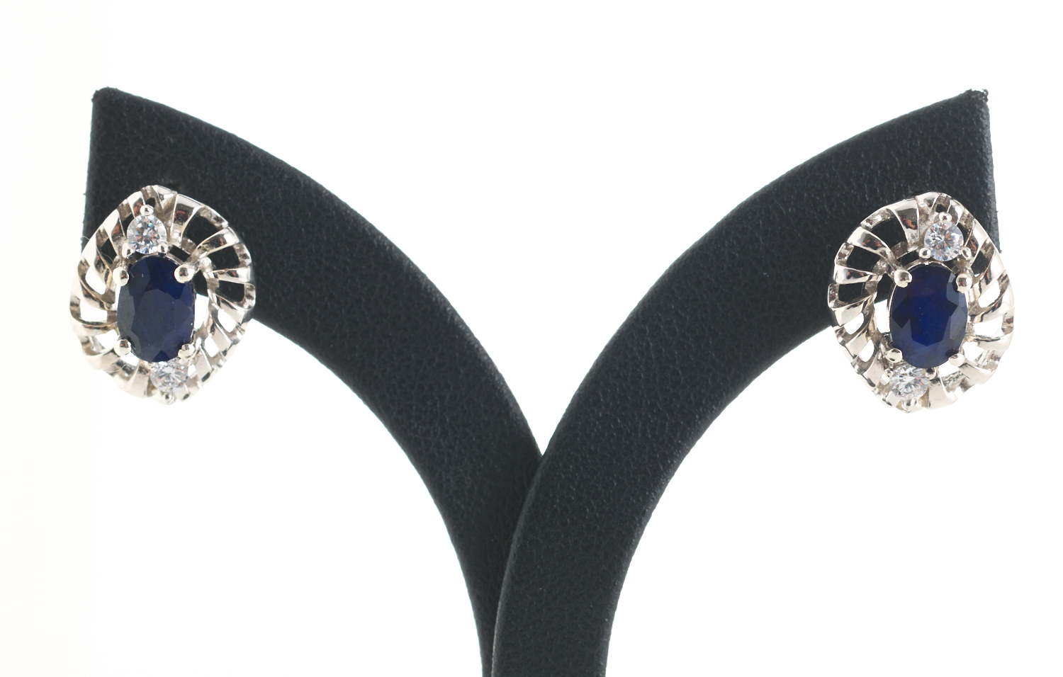A PAIR OF SAPPHIRE AND CLEAR STONE EARRINGS IN SILVER, TO POST AND CONTINENTAL CLIP FITTINGS.