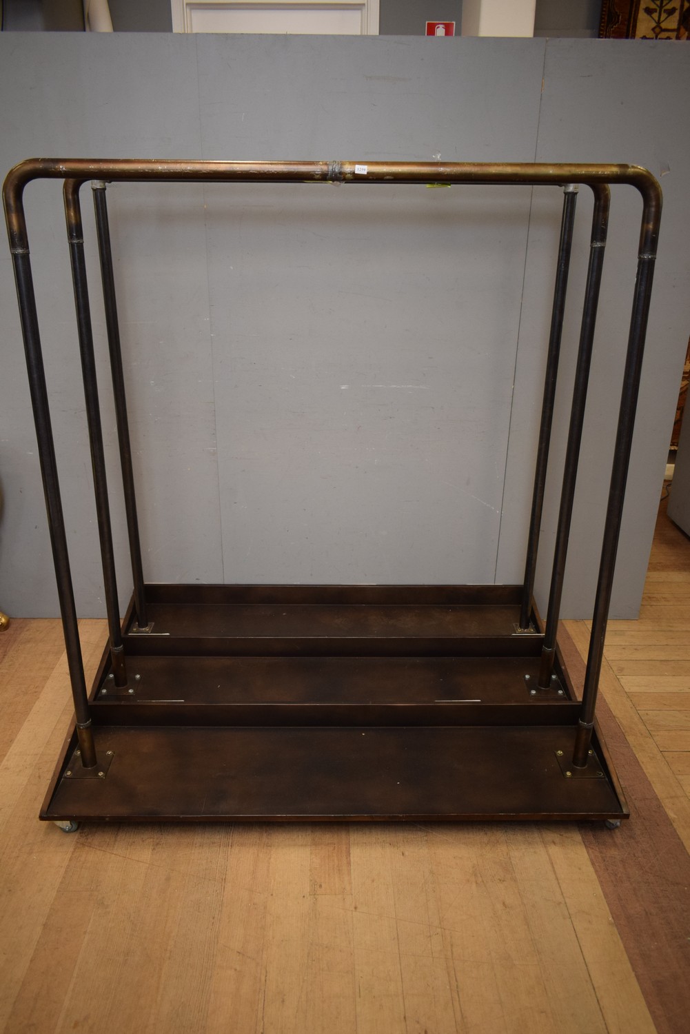 THREE INDUSTRIAL COAT RACKS WITH BOTTOM SHELVES (172H x 160W x 41D CM) (PLEASE NOTE THIS HEAVY ITEM MUST BE REMOVED BY CARRIERS AT THE CUSTOMER'S EXPENSE. LEONARD JOEL STAFF CANNOT ASSIST CARRYING THIS ITEM) (X-LARGE ITEM)