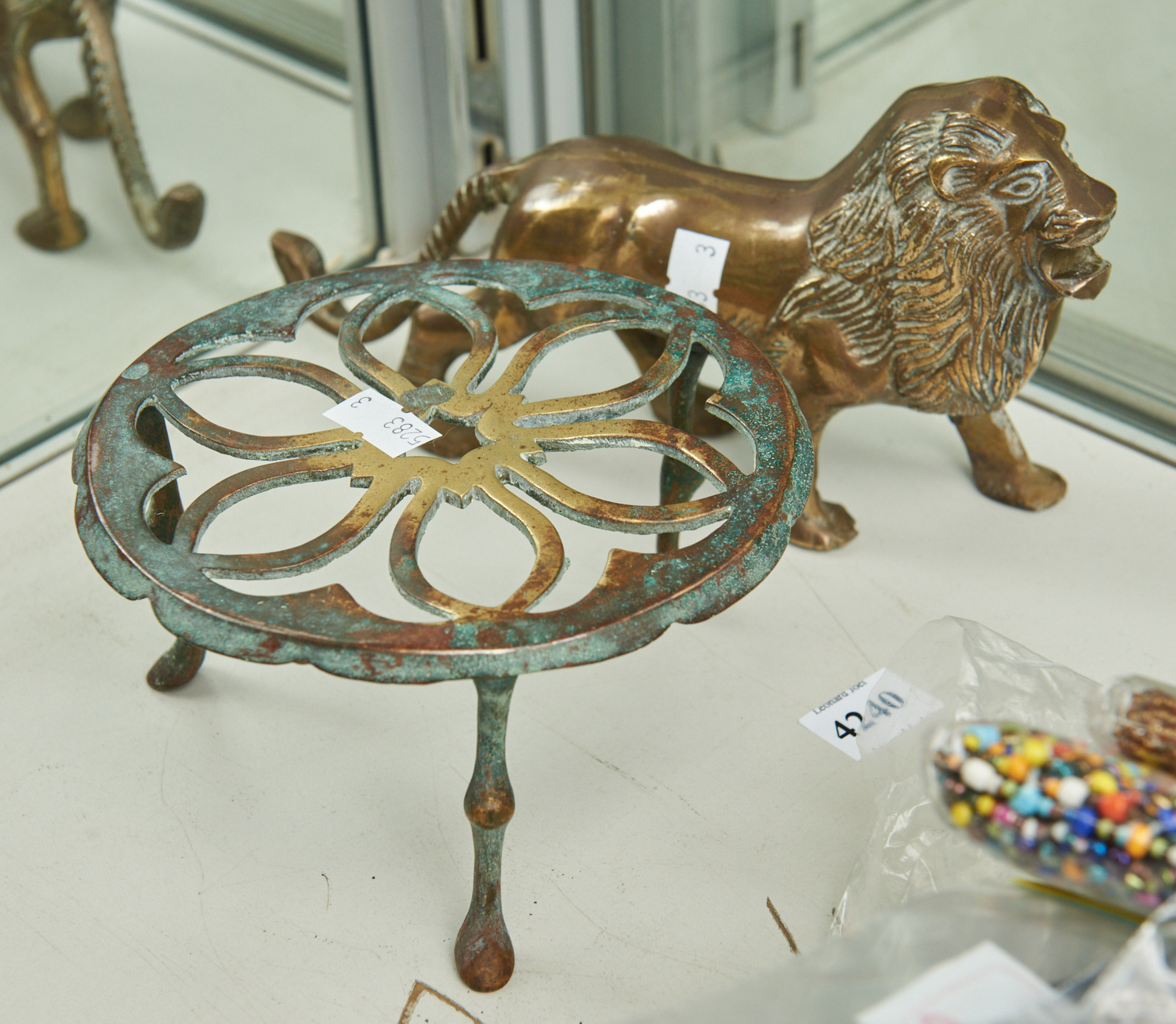 BRASS LION FIGURE TOGETHER WITH SPOT STAND, LEONARD JOEL LOCAL DELIVERY SIZE: SMALL