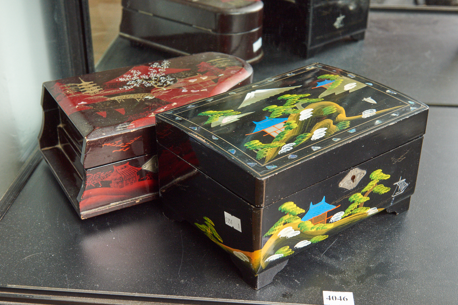 TWO JAPANESE LACQUERWARE JEWELLERY BOXES (23 CM W), LEONARD JOEL LOCAL DELIVERY SIZE: SMALL